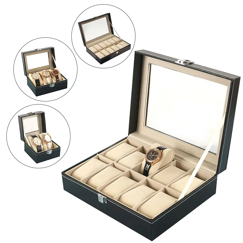 Кожаная шкатулка для хранения часов, 2310 слота, для механических мужских часов, органайзер, чехол s, черные подарочные коробки для ювелирных изделий, чехол