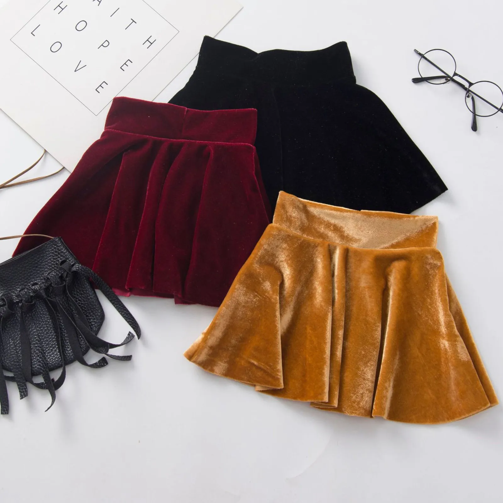 Юбка с высокой талией для девочек, бархатная однотонная плиссированная Теплая юбка принцессы, модные однотонные юбки для маленьких девочек, зимняя утепленная одежда 2021