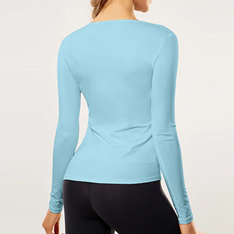 Женская футболка с длинным рукавом для бега, Сексуальная футболка для йоги с открытым пупком, быстросохнущие топы для фитнеса, тренажерного зала, однотонные спортивные рубашки