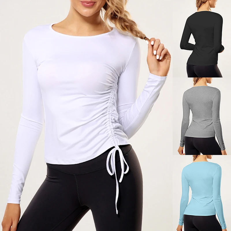 Особенности:Посылка входит: женская рубашкаРазмер: S-2XLМатериал: полиэстерТип: твердыйЖенские рубашки для бега с длинным рукавом, сексуальные футболки для йоги с открытым пупком, быстросохнущие укороченные топы для фитнеса и спортзала, однотонные спортивные рубашки.