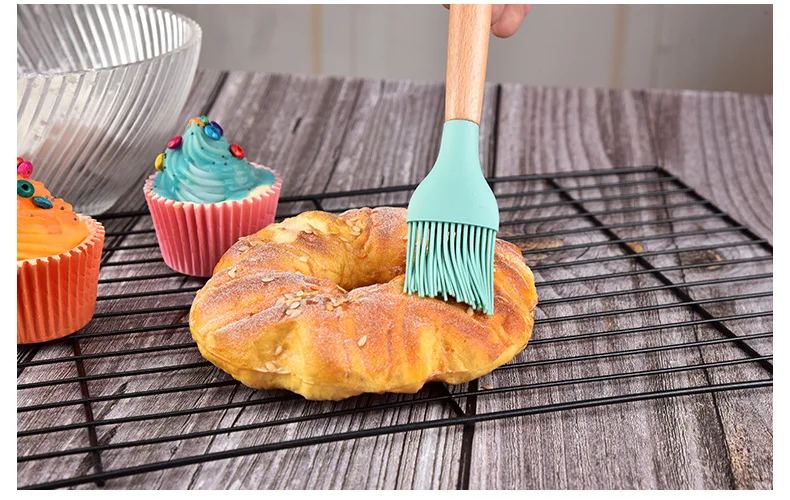 Розовая кожа, инструмент, силиконовая посуда с деревянной многофунк...