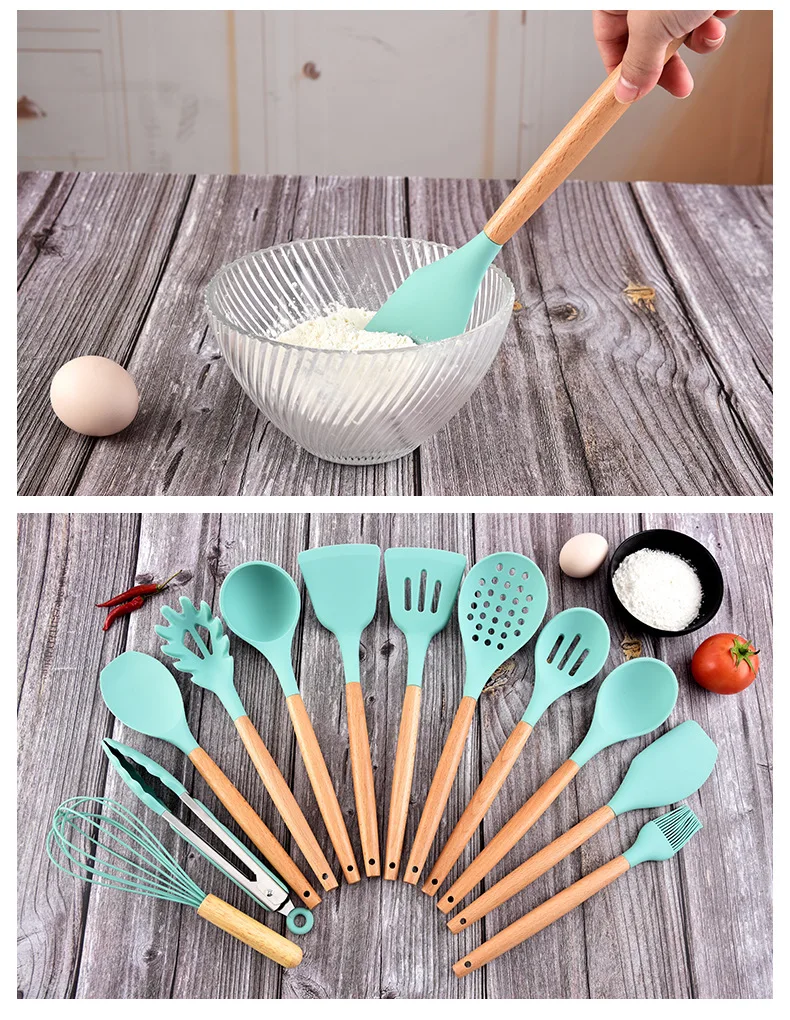 Набор кухонных принадлежностей из силикона, 12 в 1, термостойкая де...