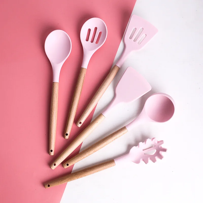 11 шт.компл. 9 шт.компл. розовая силиконовая кухонная утварь с дере...