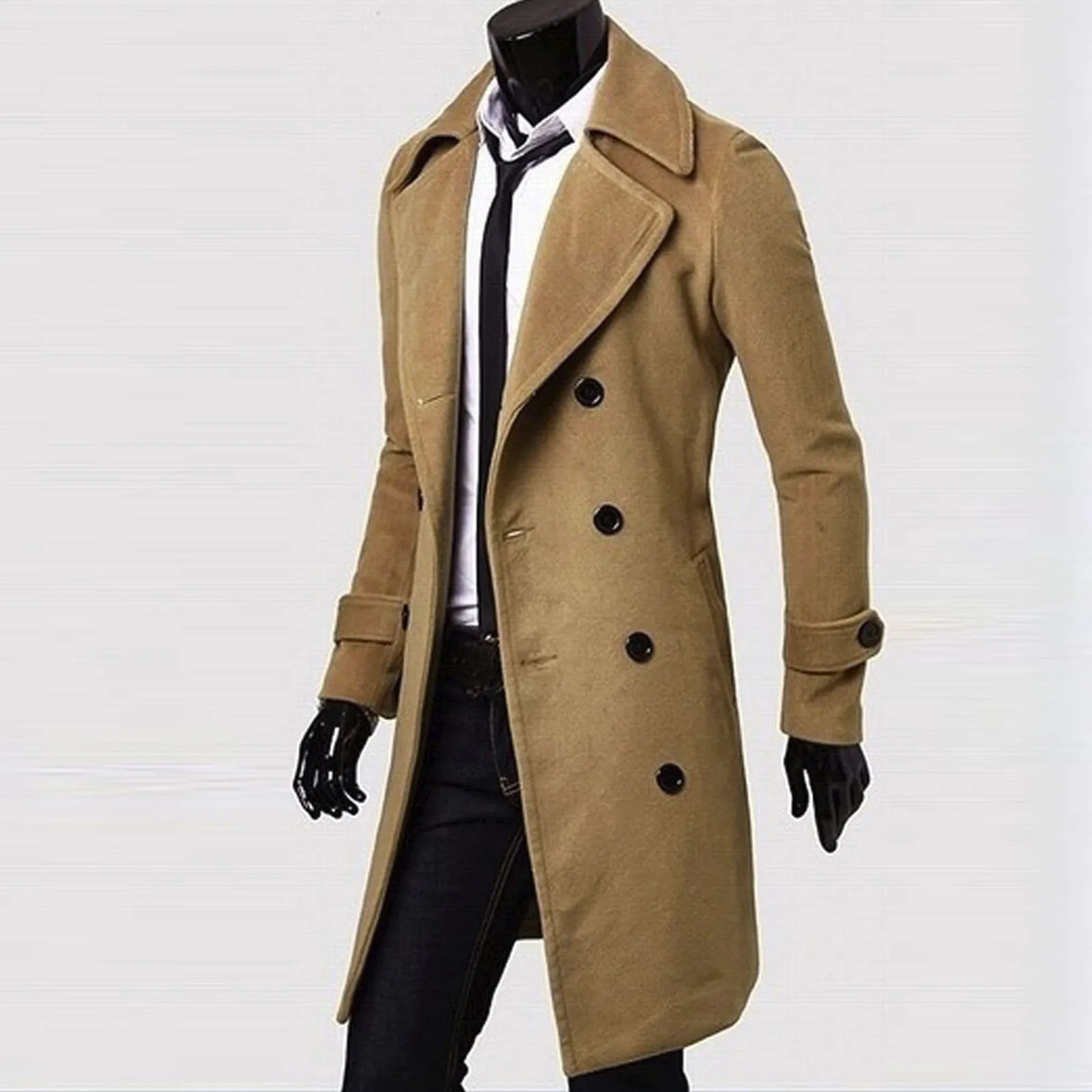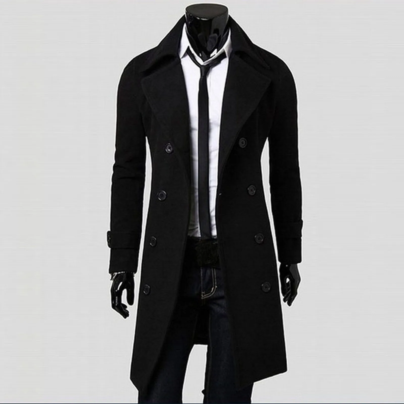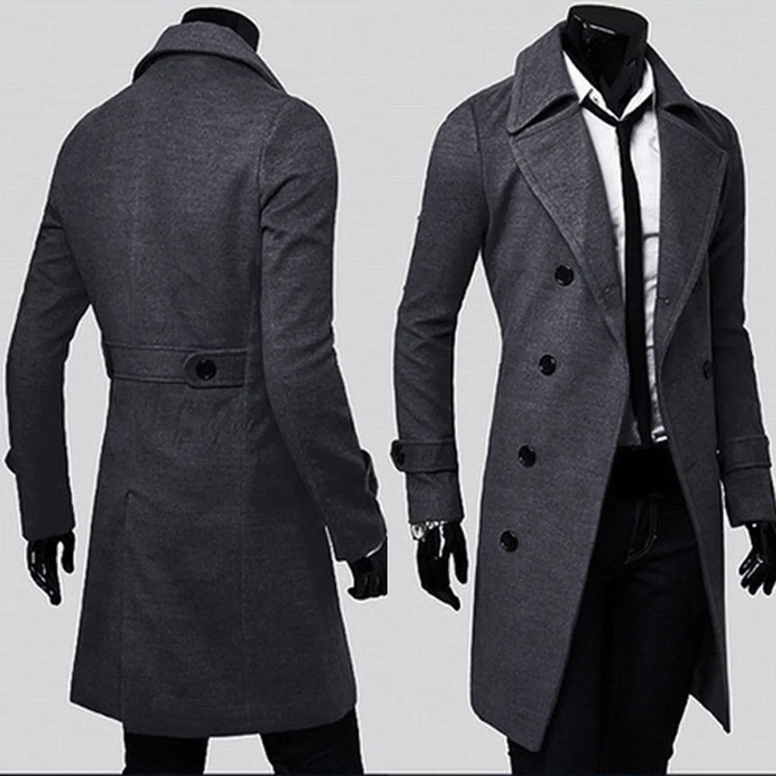 Зимние мужские Тонкий стильный Тренч двубортная длинная куртка-парка