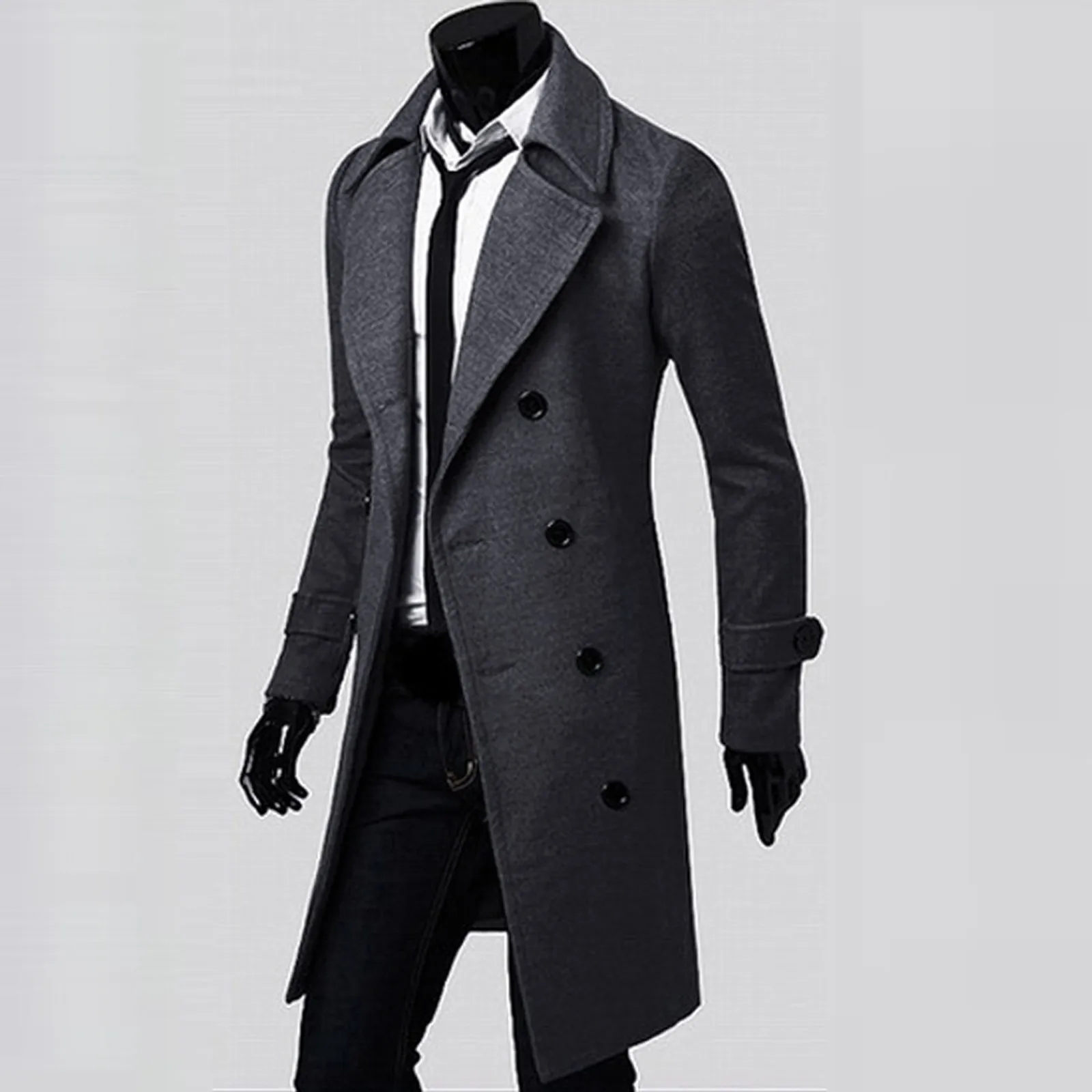 Пальто мужское, зимнее, приталенное, двубортное, длинное