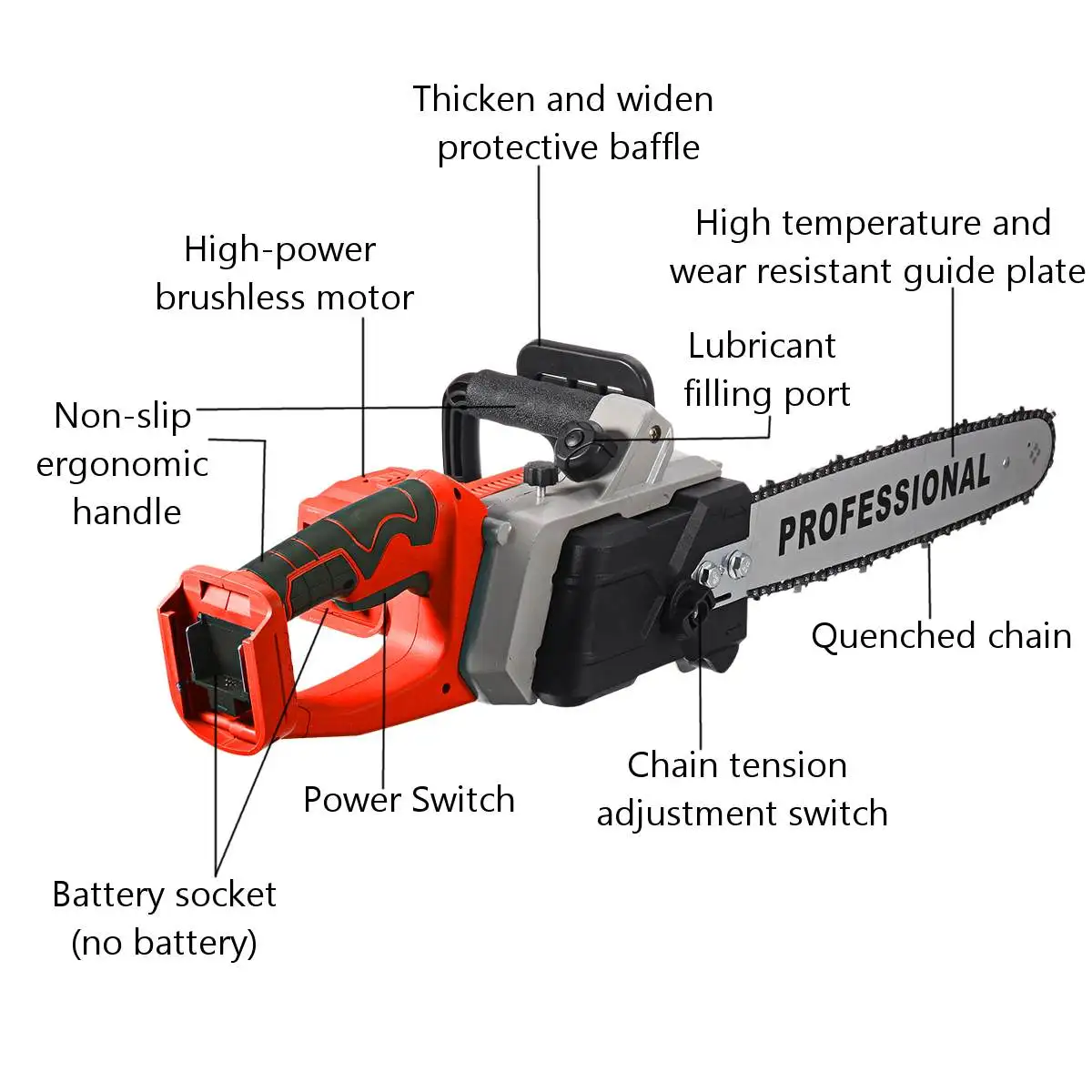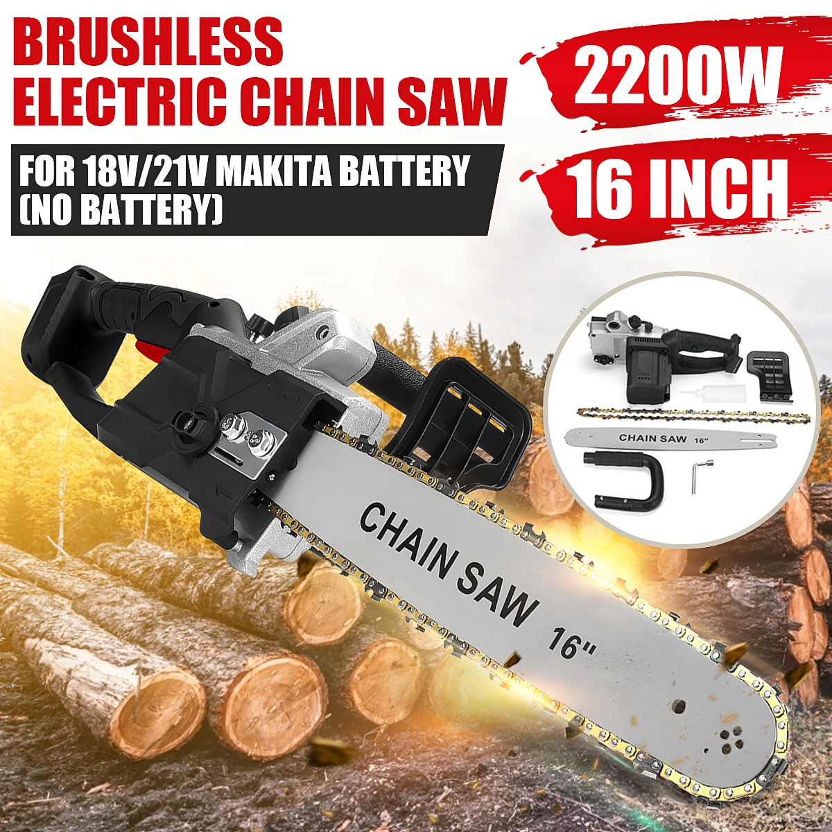 Электрическая пила, 16 дюймов, 2200 Вт, для цепной пилы по дереву, кронштейн, Бесколлекторный двигатель, для аккумулятора Makita 18 в, без аккумулятора
