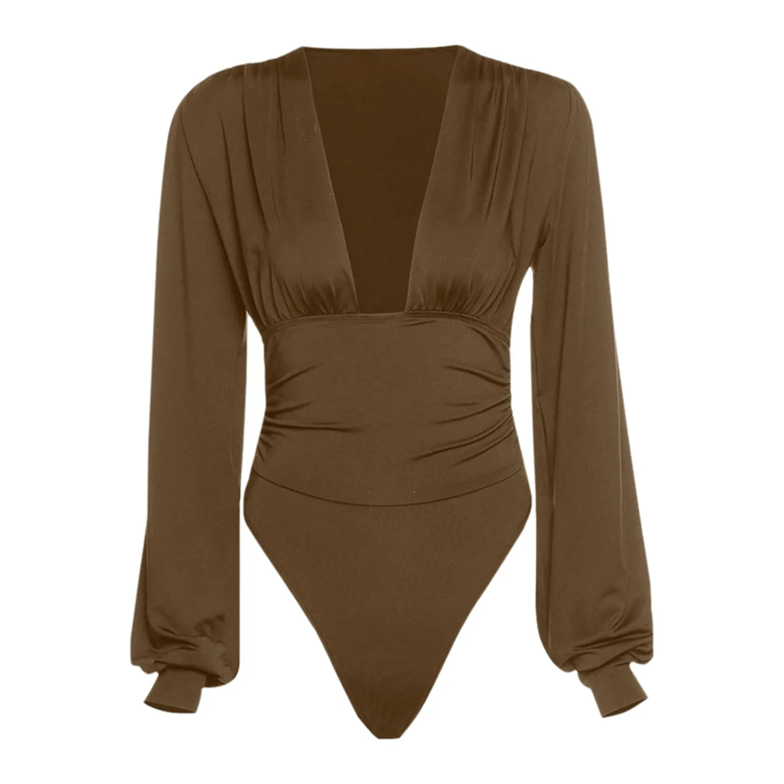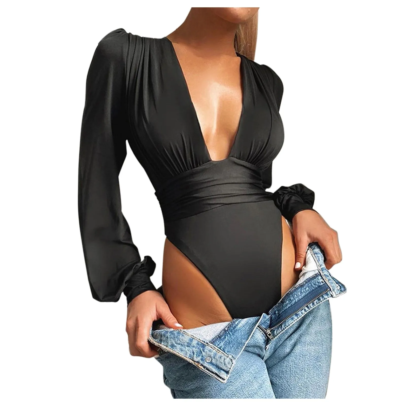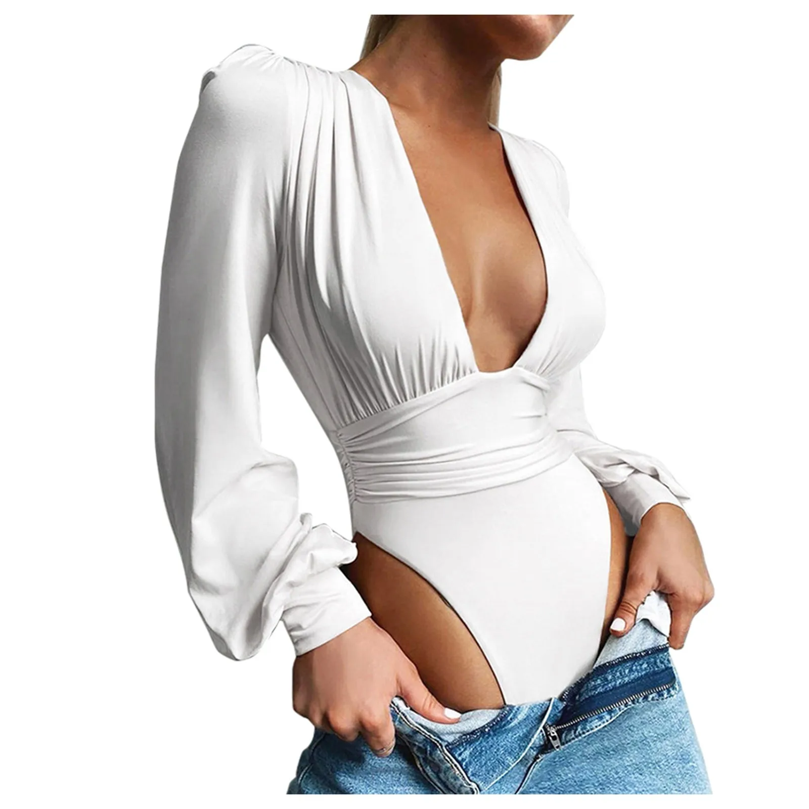 Женский сексуальный однотонный Облегающий комбинезон с длинными рукавами и низким вырезом