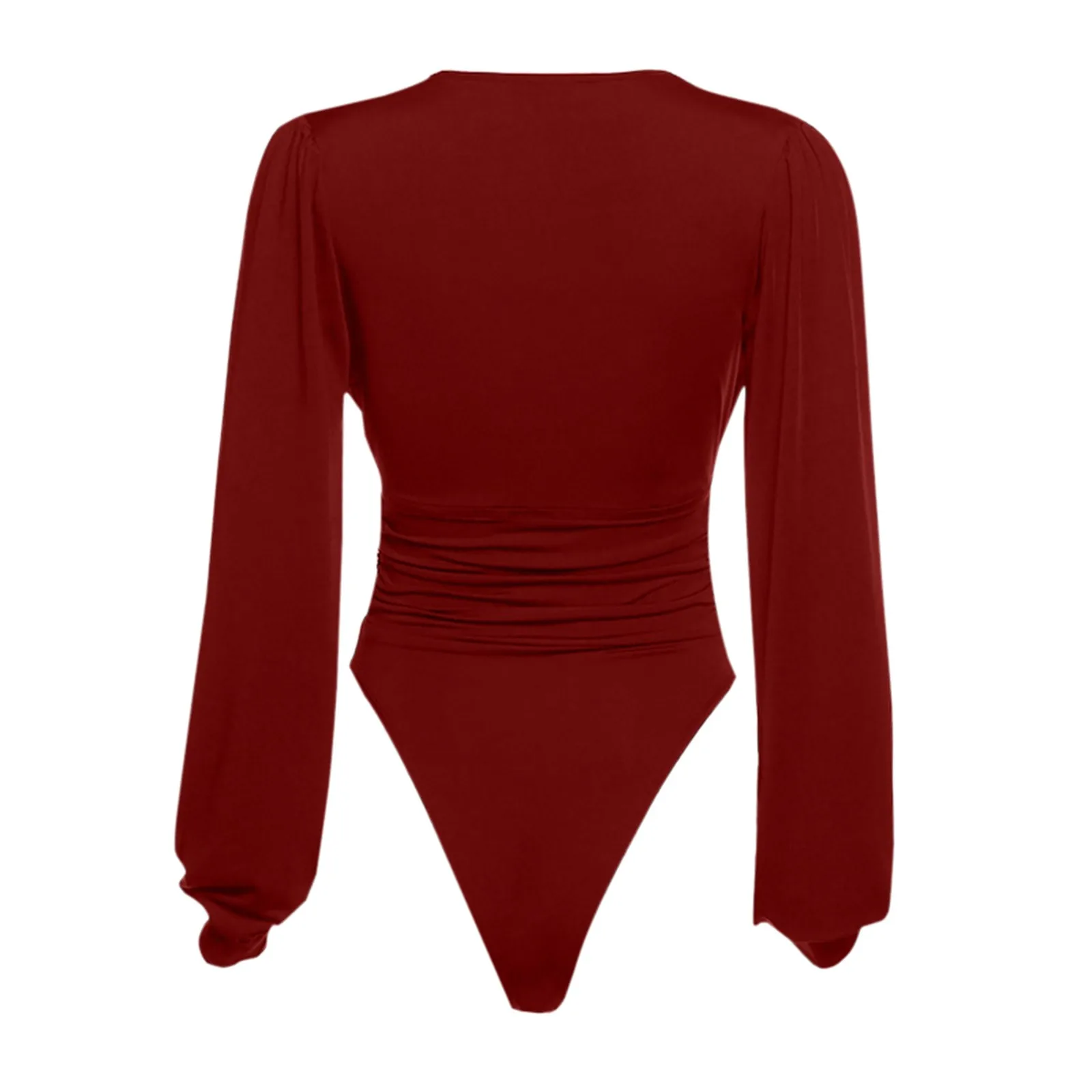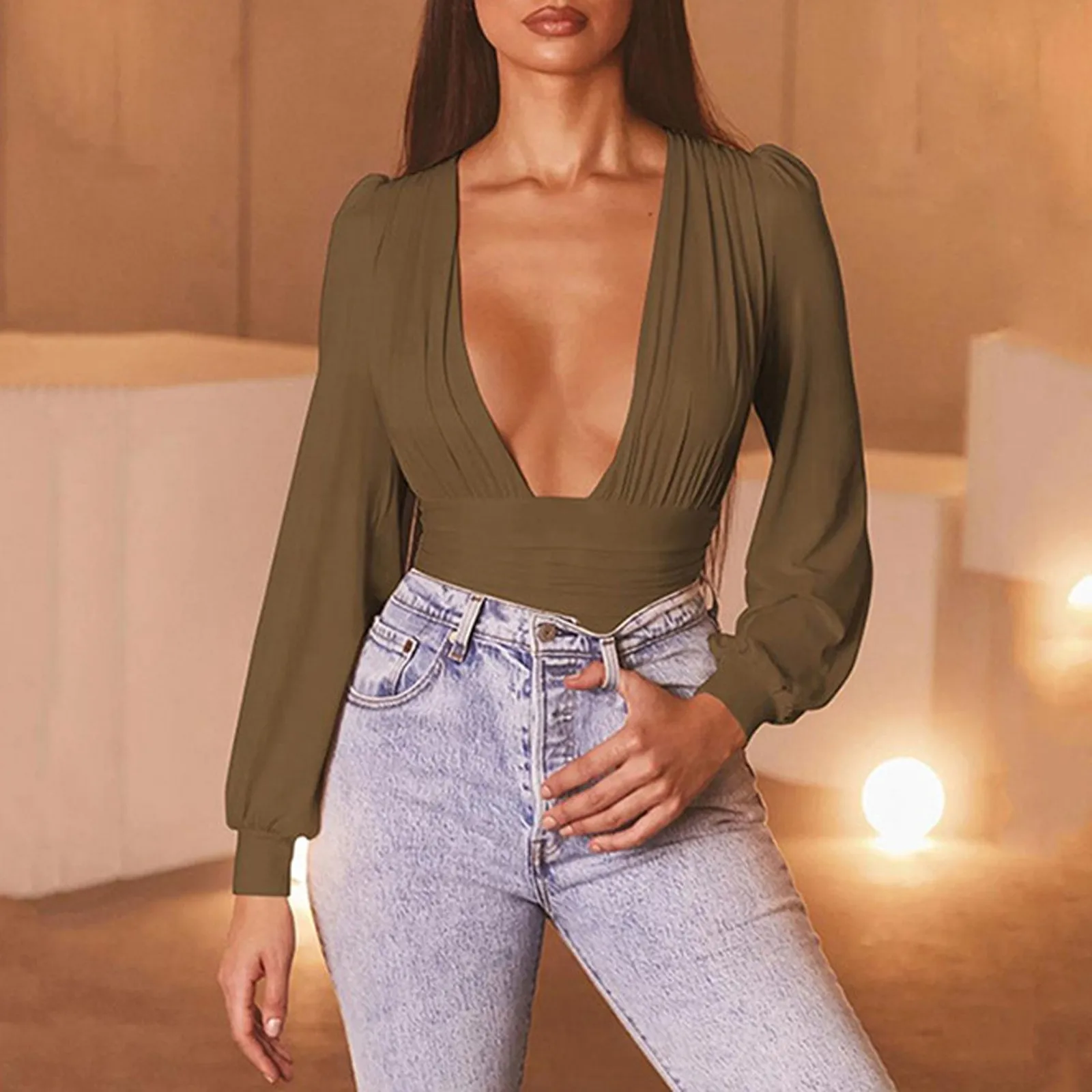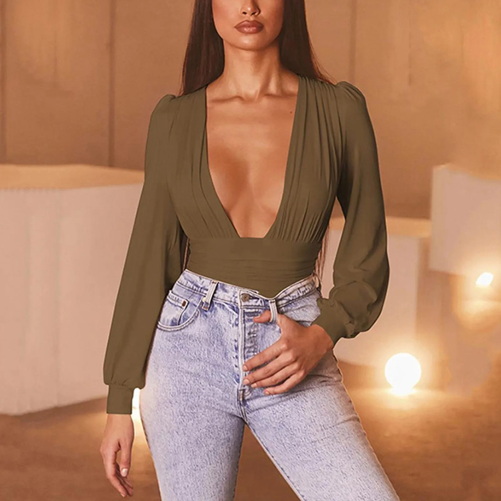 Женский сексуальный однотонный Облегающий комбинезон с длинными рукавами и низким вырезом