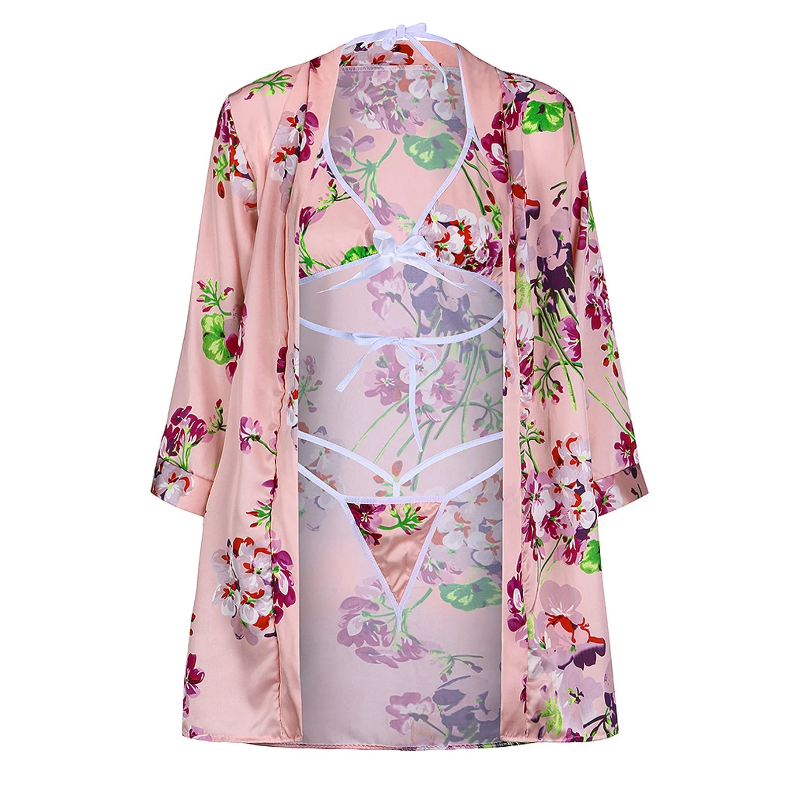 Упаковка: 1 комплект шелковых пижам (1X Ночная сорочка 1X бюстгальтер 1X стринги)