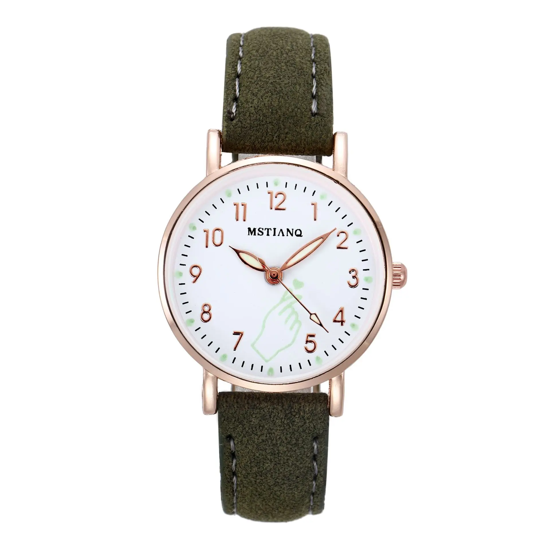 Светящиеся часы, женские, с кожаным ремешком, маленькие, циферблат кварцевых часов