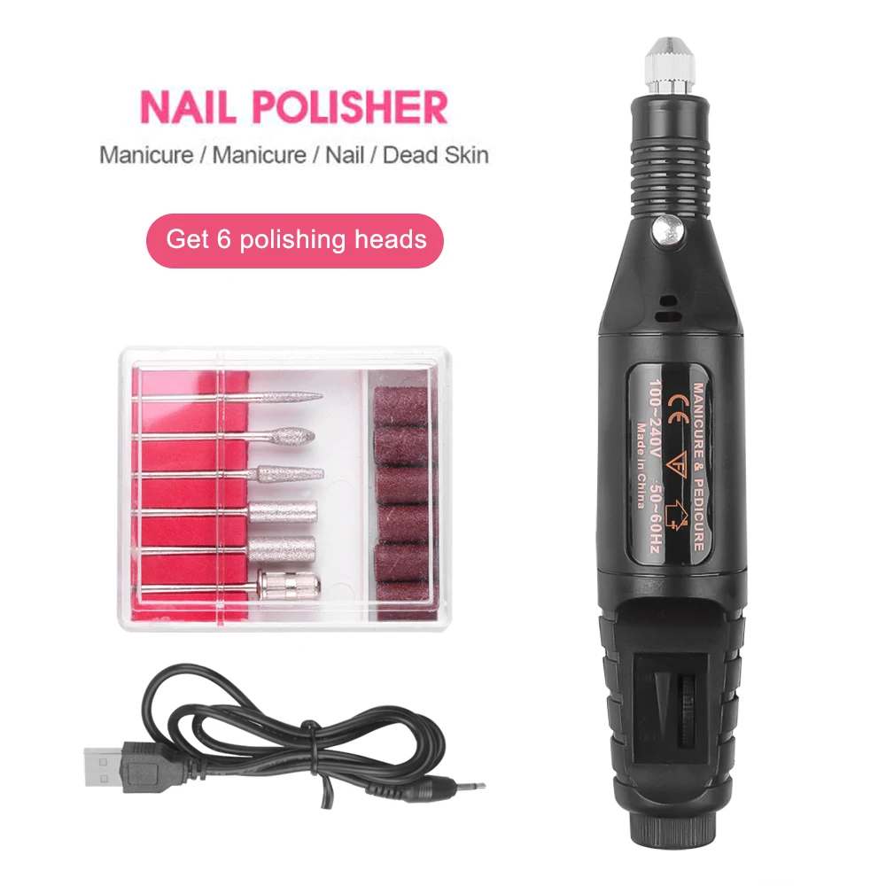 1 Набор электрическая дрель для ногтей набор USB зарядка маникюрная Машинка для педикюра 6 бит шлифовальная буферная пилка для ногтей ручка для дизайна ногтей TSLM1