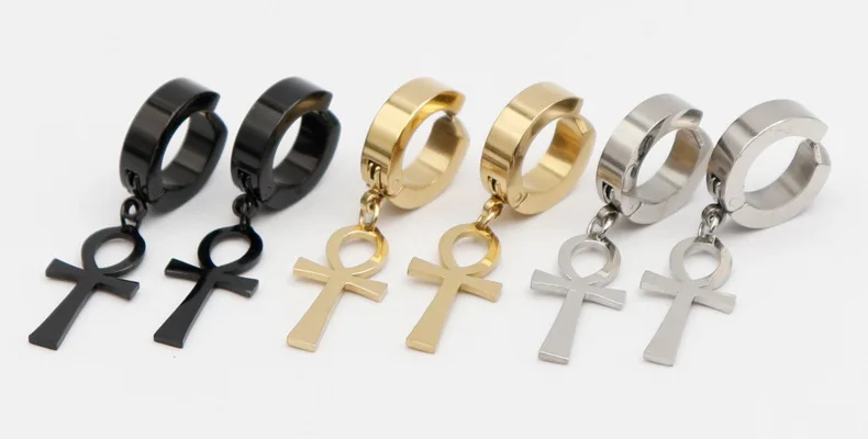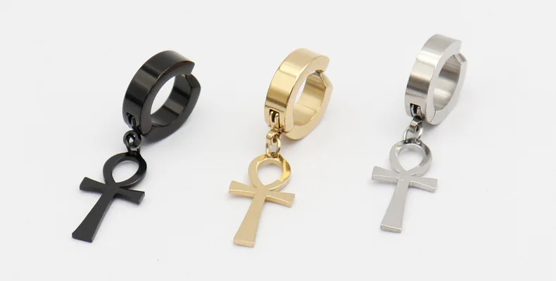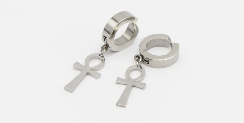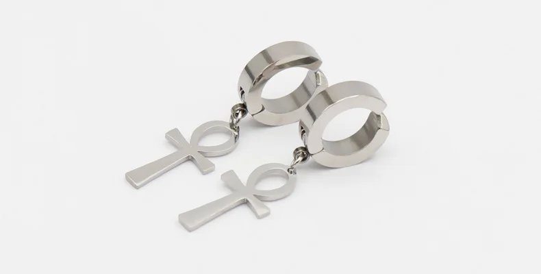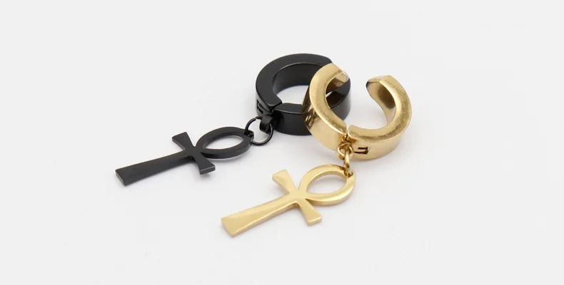 Серьги-клипсы мужские из нержавеющей стали, вечный крест, египетская Клеопатра, 1 пара