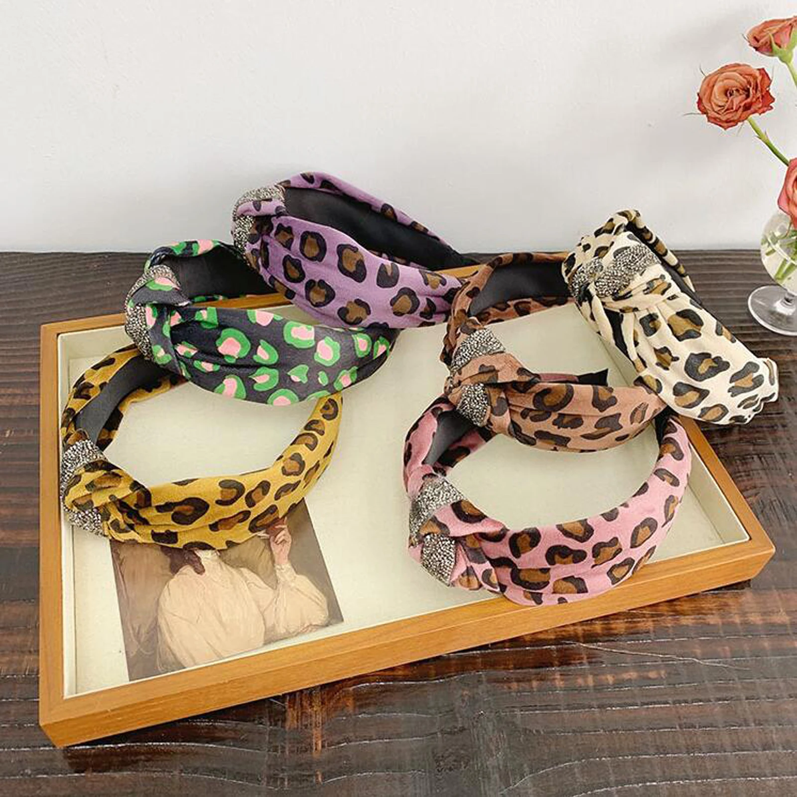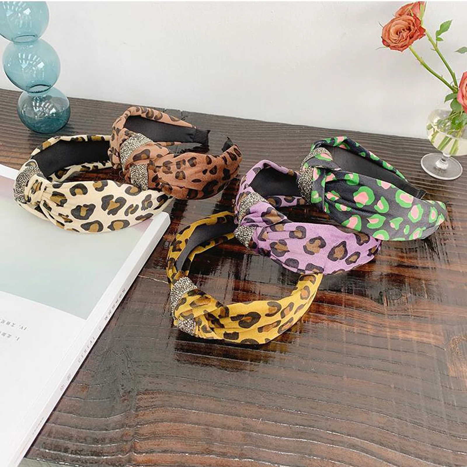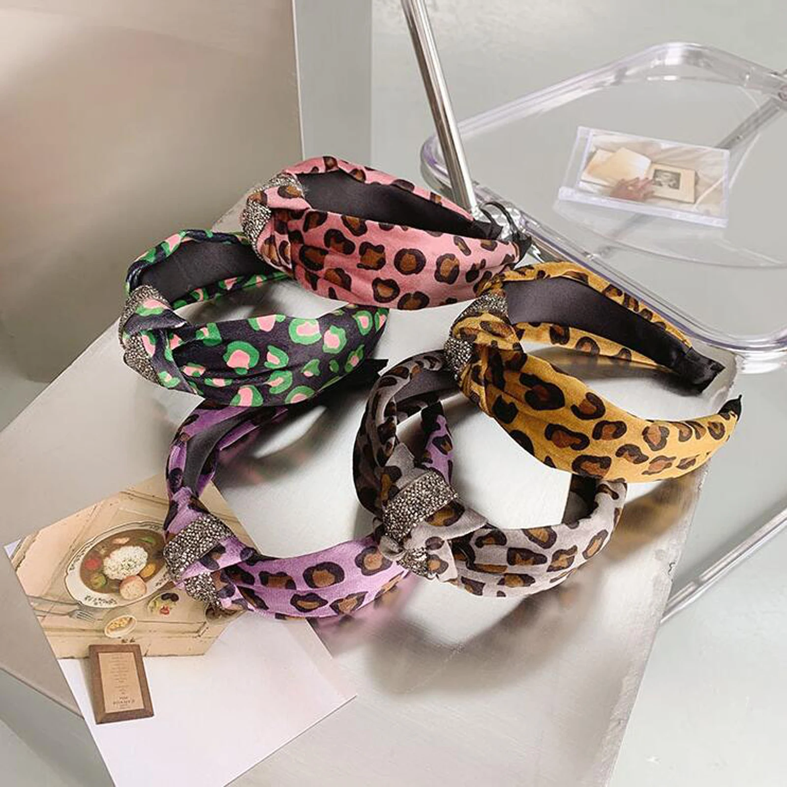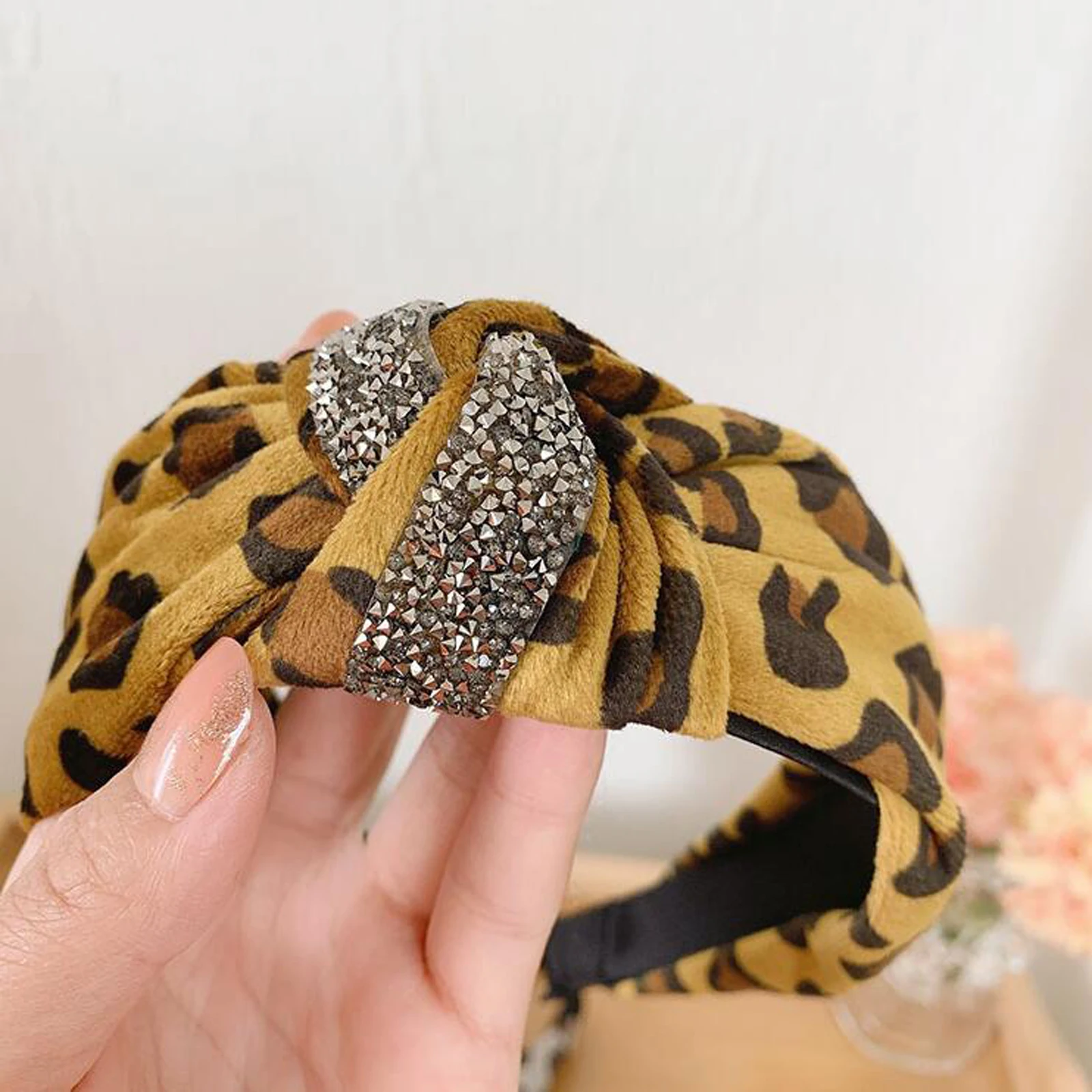 PROLY Новая мода Женская повязка на голову шириной боковой леопардовой повязкой на голову стразы головной убор для взрослых центр узел тюрбан женские аксессуары для волос