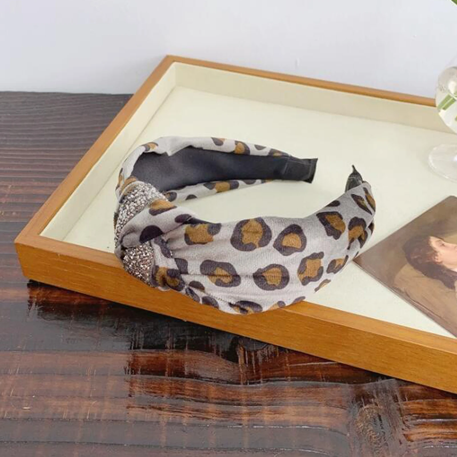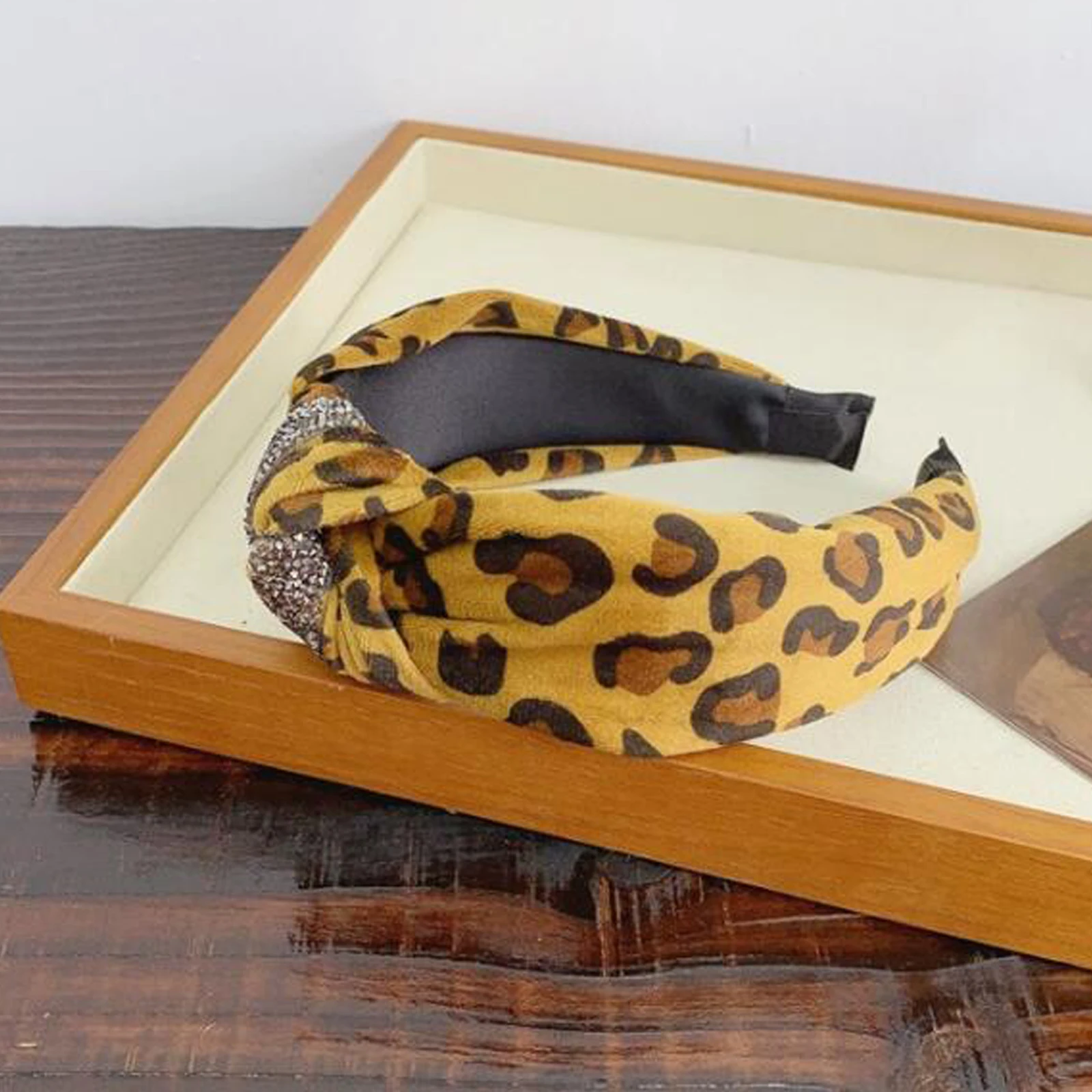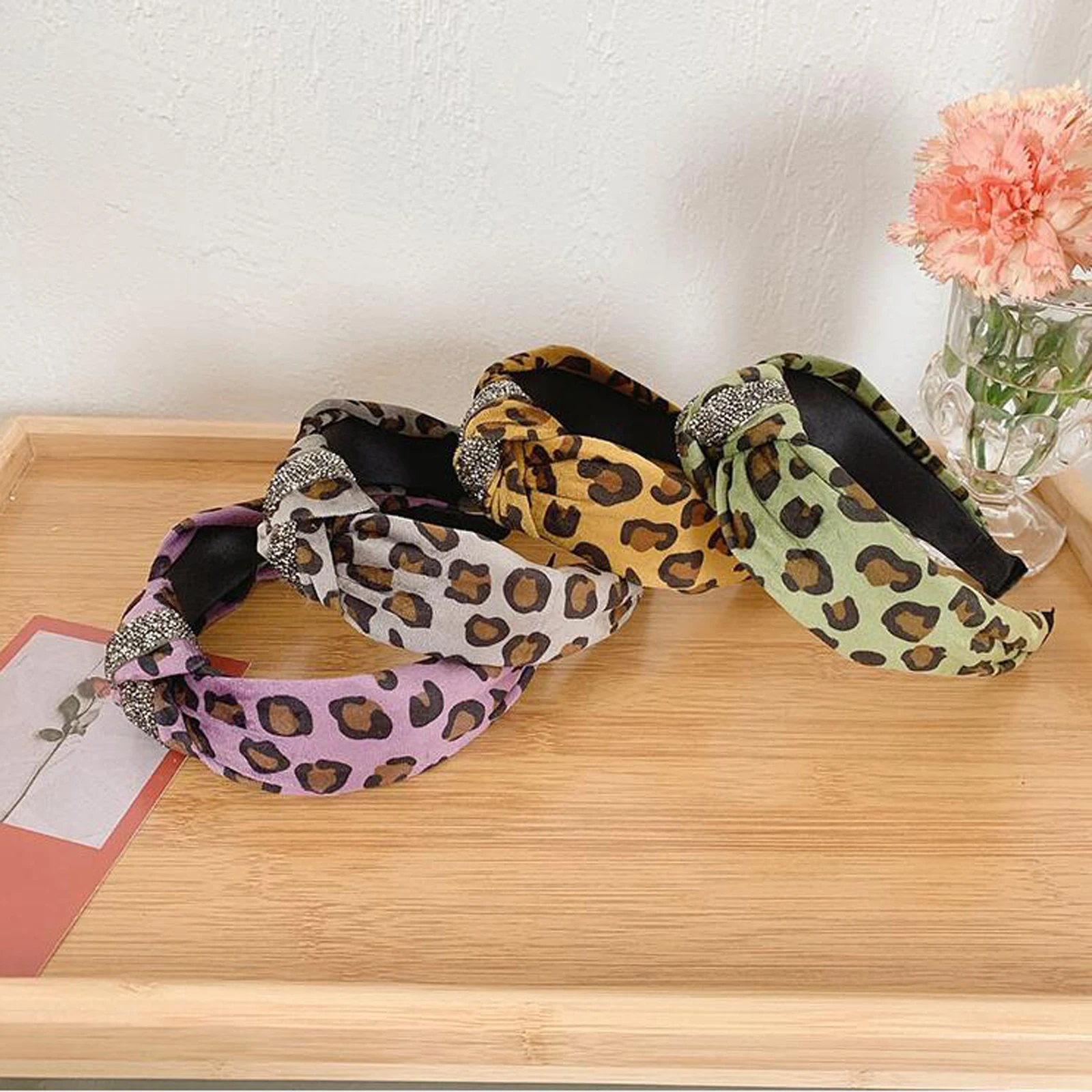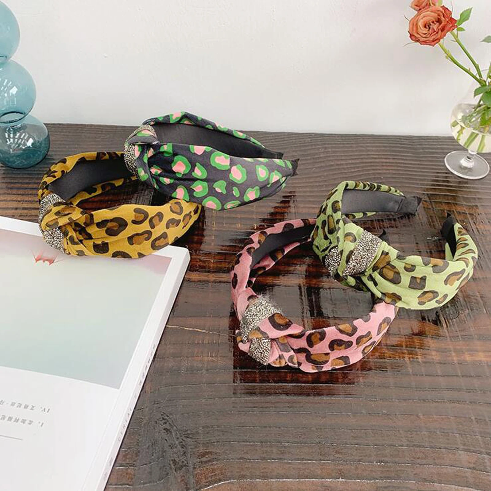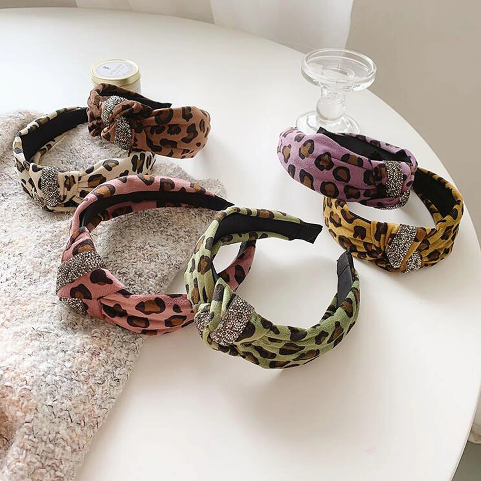PROLY Новая мода Женская повязка на голову шириной боковой леопардовой повязкой на голову стразы головной убор для взрослых центр узел тюрбан женские аксессуары для волос