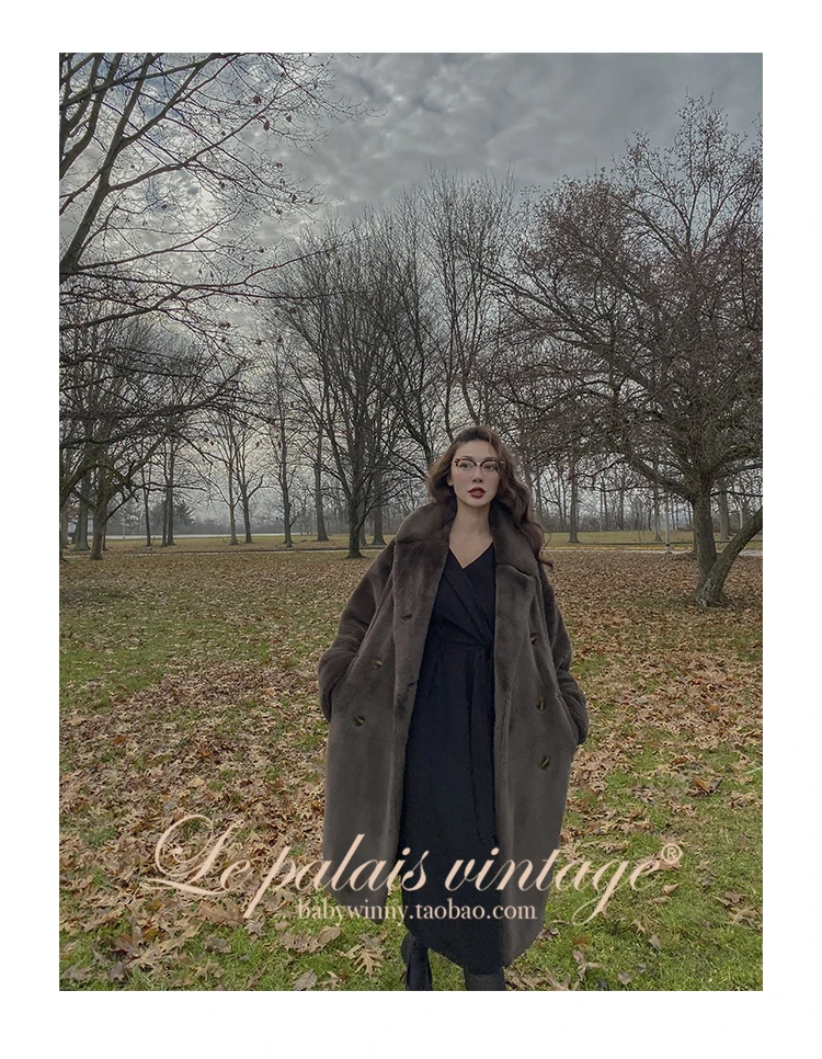 Le Palais Vintage 2020 Оригинальное осенне-зимнее женское винтажное повседневное простое модное свободное шерстяное длинное пальто каштанового и коричневого цвета в уличном стиле