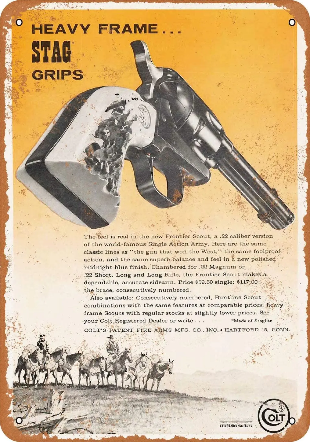 Новый Винтажный металлический знак 20x30 см 1962 Colt Frontier Scout