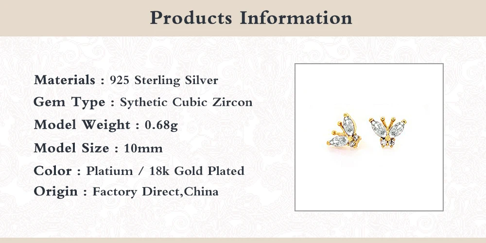 Женские серьги-гвоздики в виде бабочки, из серебра 925 пробы