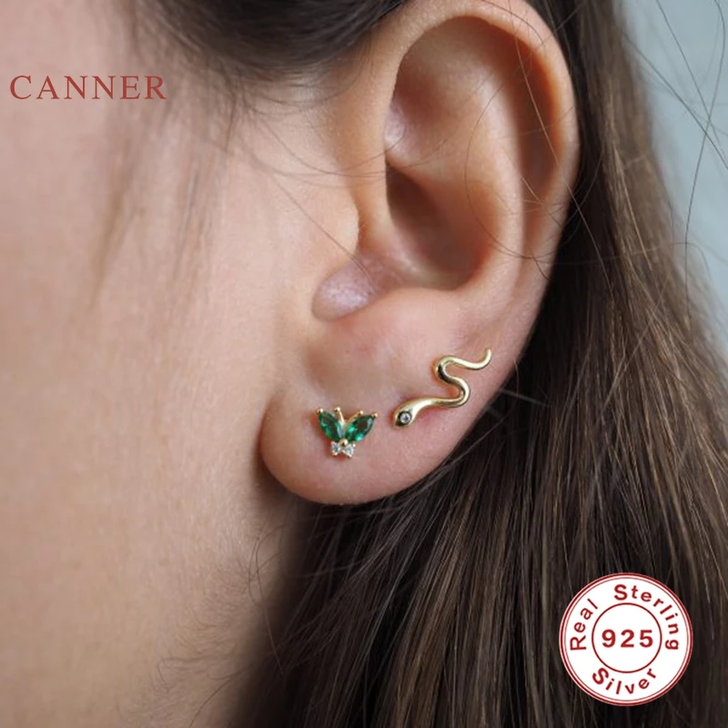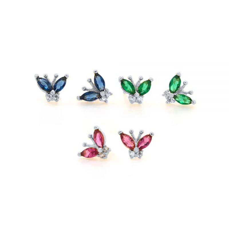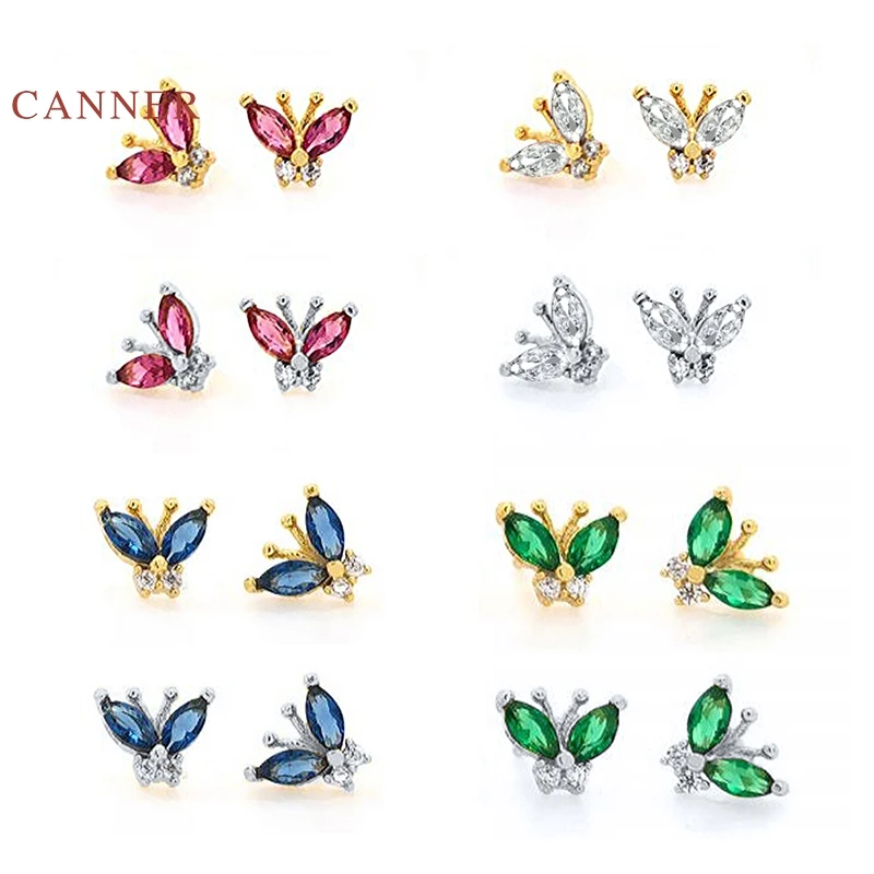 Женские серьги-гвоздики CANNER Ins с цветными бриллиантами и бабочками, Стерлинговый Серебряный пирсинг S925