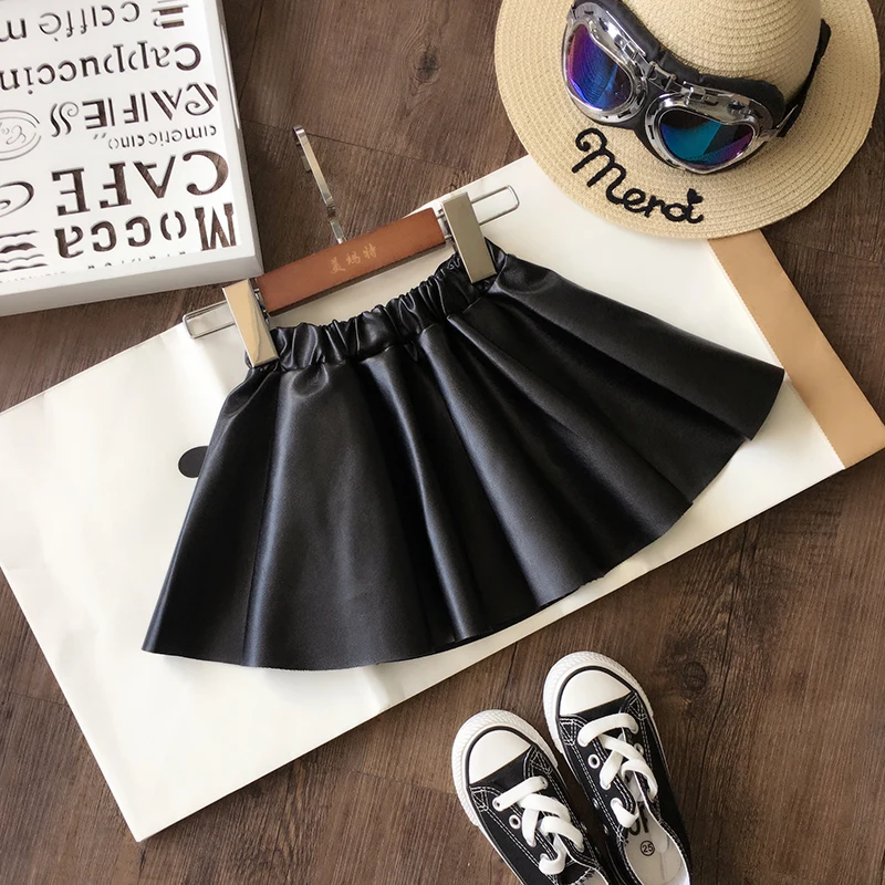 Новинка 2021, демисезонная и зимняя детская юбка из искусственной кожи для девочек, милая детская одежда принцессы, мини-юбка, платье из ткани