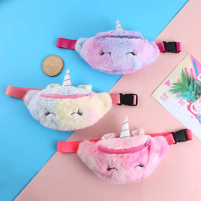 Детская поясная сумка с милым единорогом, забавный мультяшный плюшевый женский кошелек, модная дорожная Сумочка для телефона, нагрудная сумка, 3 цвета