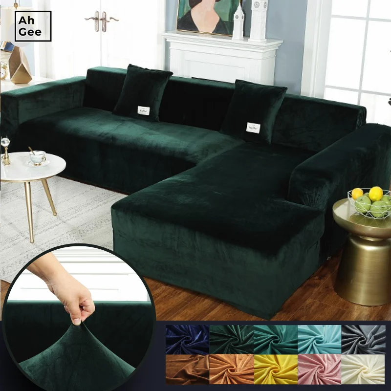 Однотонный бархатный тканевый эластичный L-образный чехол для дивана, Бархатные чехлы для дивана в гостиной, эластичный чехол для дивана с наволочкой