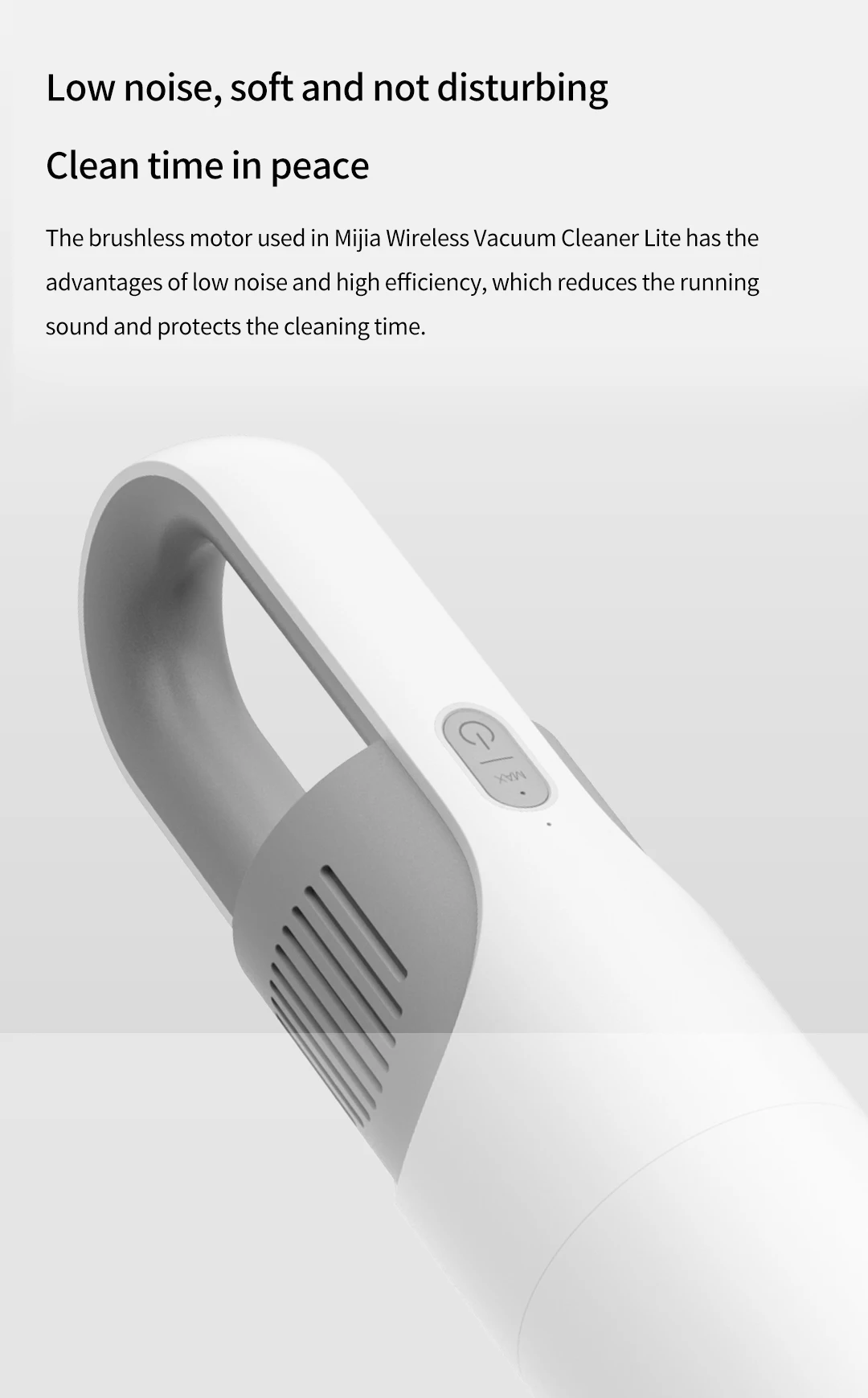 Пылесос XIAOMI MIJIA LITEОсобенности* Высокоскоростной бесщеточный двигатель, сильная мощность всасывания 17000 па.* Абсолютно Новый 1,2 кг хост, простых в использовании.* Полимерная литиевая батарея, 45 мин непрерывное время работы.* Тройная Высокоэффективная фильтрация* Многофункциональная комбинированная щетка* Высокоскоростная вращающаяся щетка для пола.* Низкий уровень шума, Оптимизированный дизайн, гладкий воздуховод.