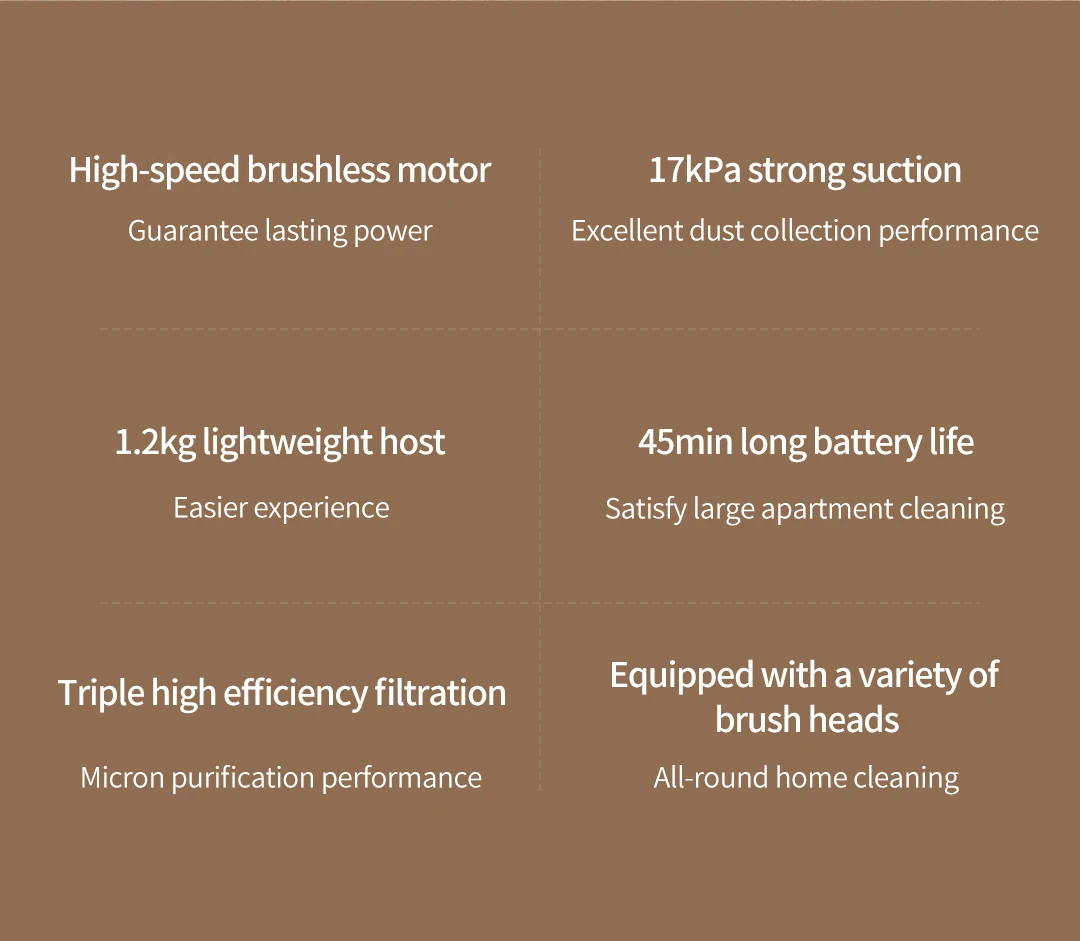 Высокоскоростной бесщеточный моторСильная мощность всасывания 17000 па.
