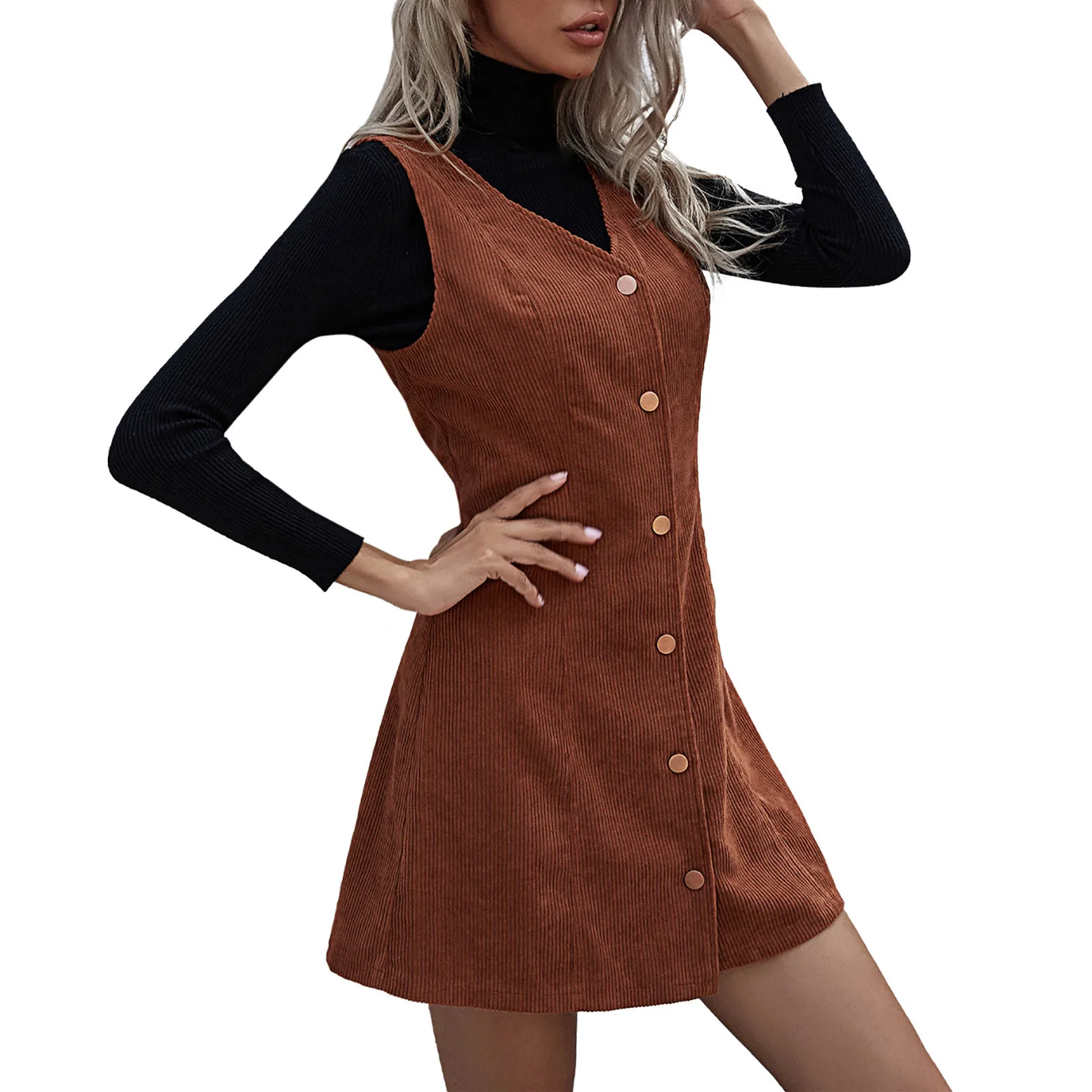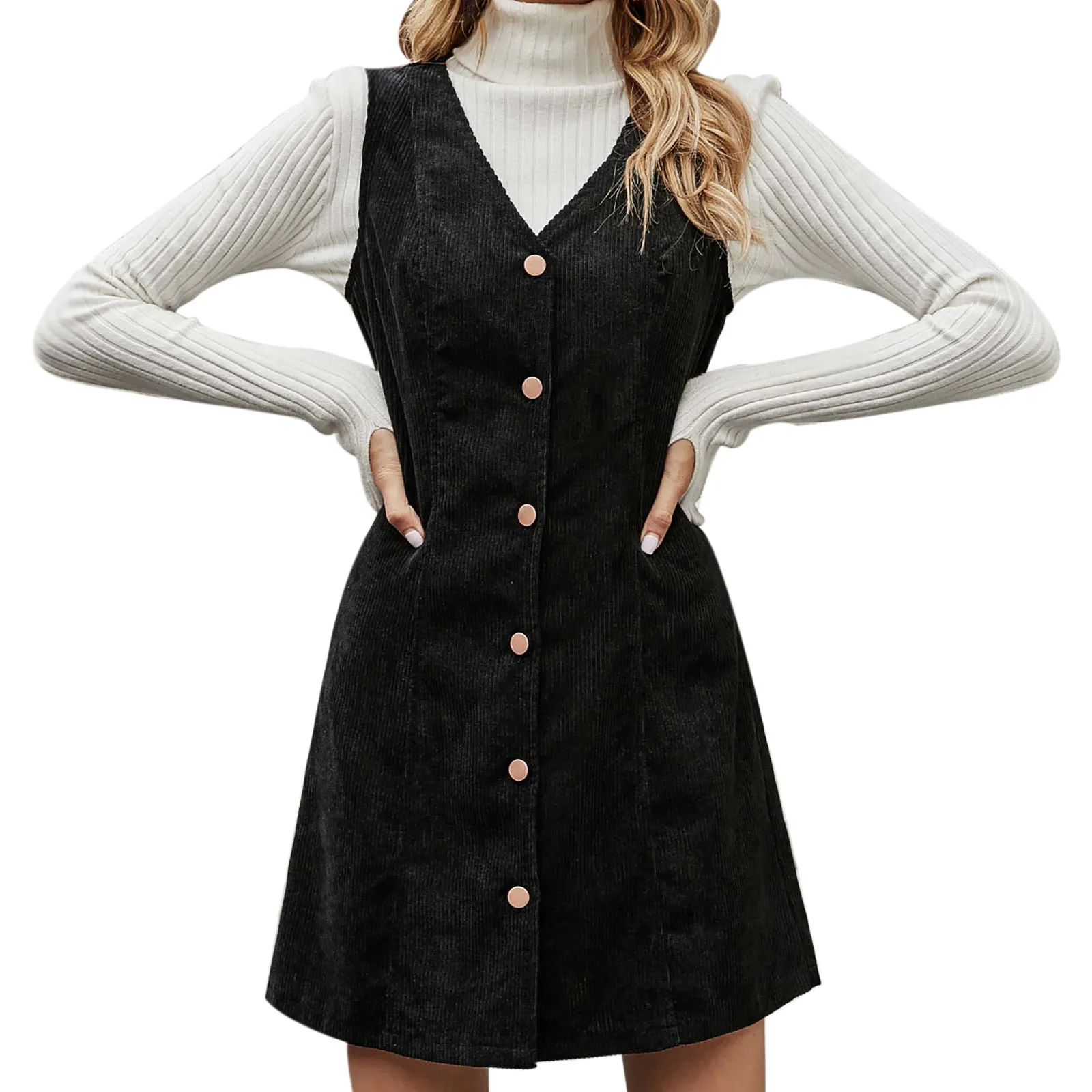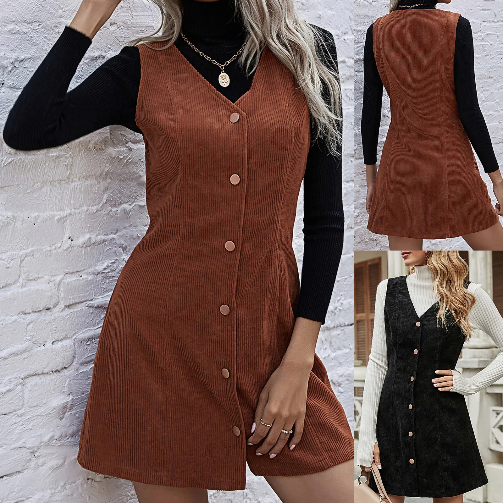 Женское платье осень и зима темперамент v-образным вырезом вельветовое платье без рукавов