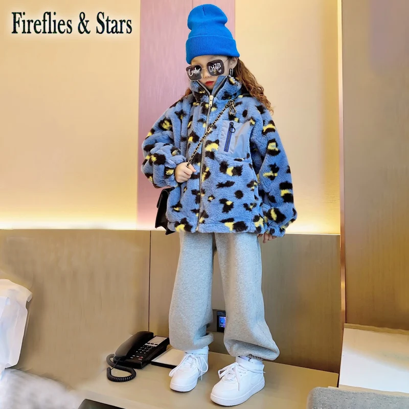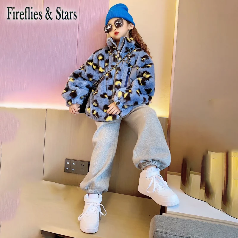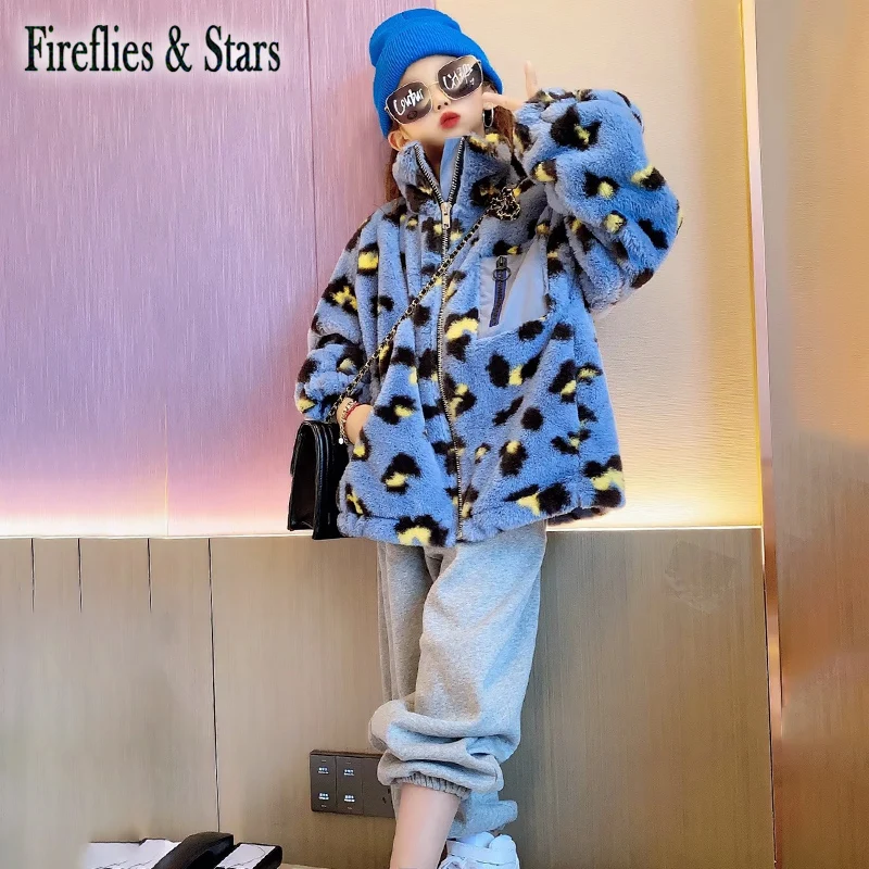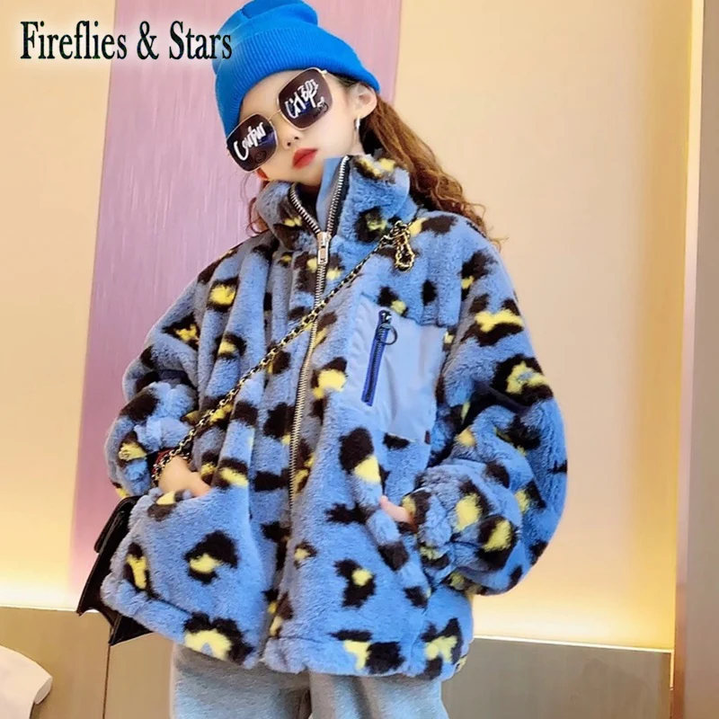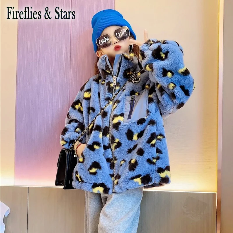 Зимняя меховая куртка для девочек, Детское пальто, верхняя одежда для малышей, детская теплая одежда, новая модная бархатная куртка с искусственным мехом, леопардовым принтом и боковыми карманами от 3 до 13 лет