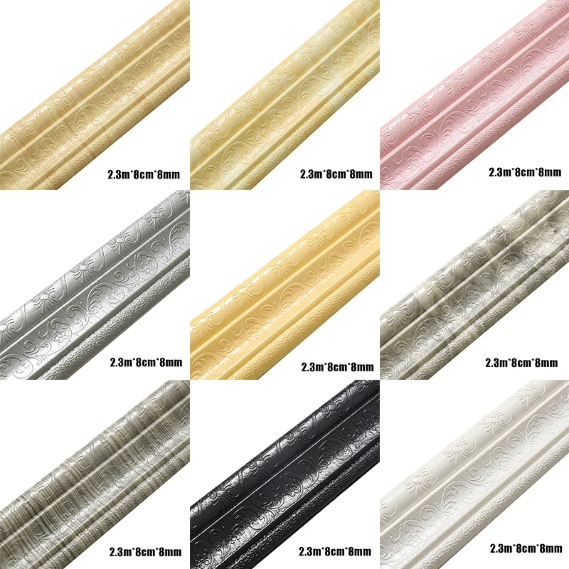 Высококачественная пена из ПВХ, термостойкая, устойчивая к коррозии, водонепроницаемая, устойчивая к плесени, легко моется.Самоклеющиеся наклейки на стену, прочная адгезия, долговечность.Длина является 2,3 m/7.54ft, ширина 8 см/3.14in.Легко наносится на стены, двери, окна, туалет, стекло и другие твердые гладкие поверхности, просто очистите и приклейте.Прежде чем наклеить его, вы должны вытереть пыль.