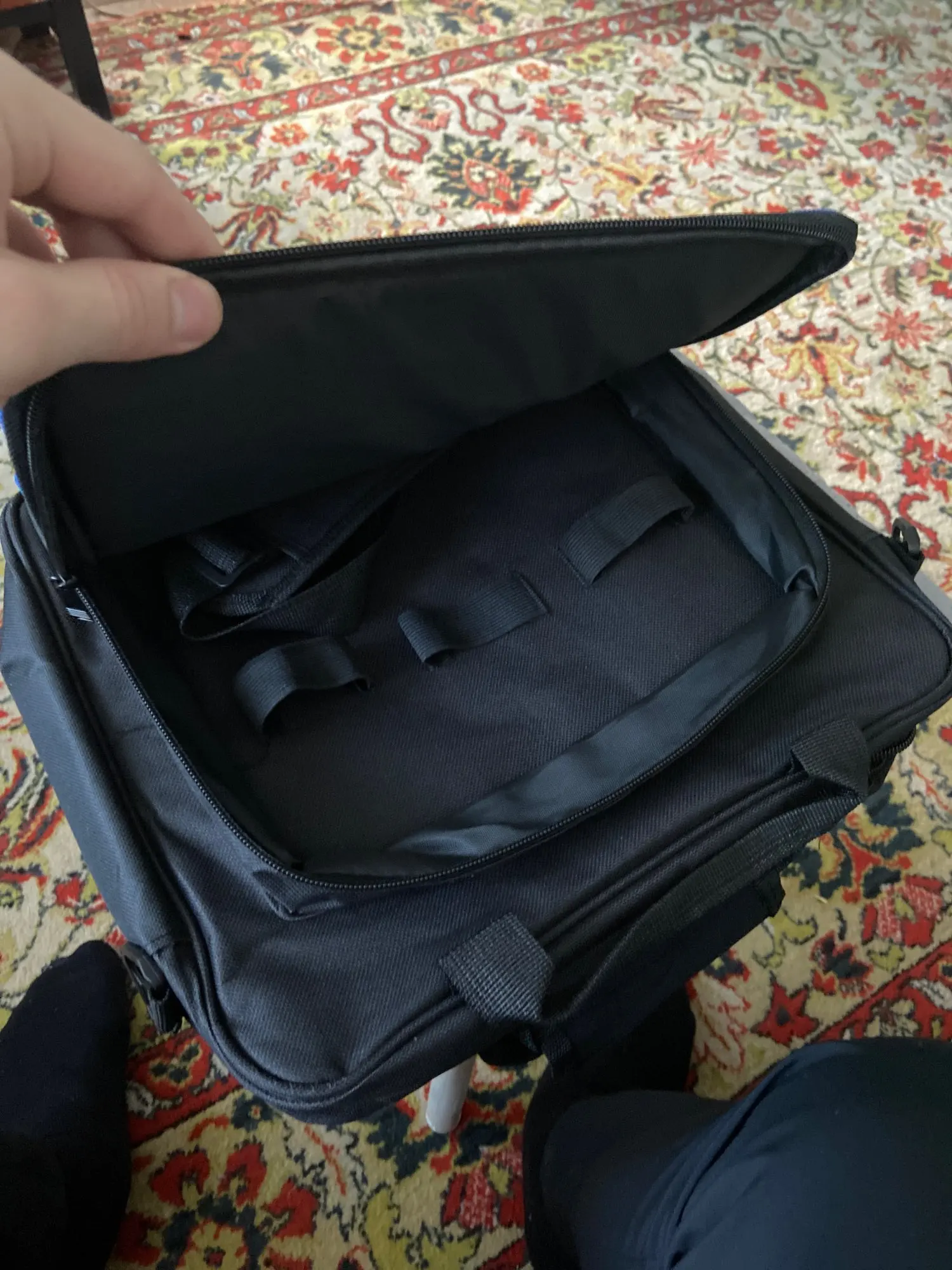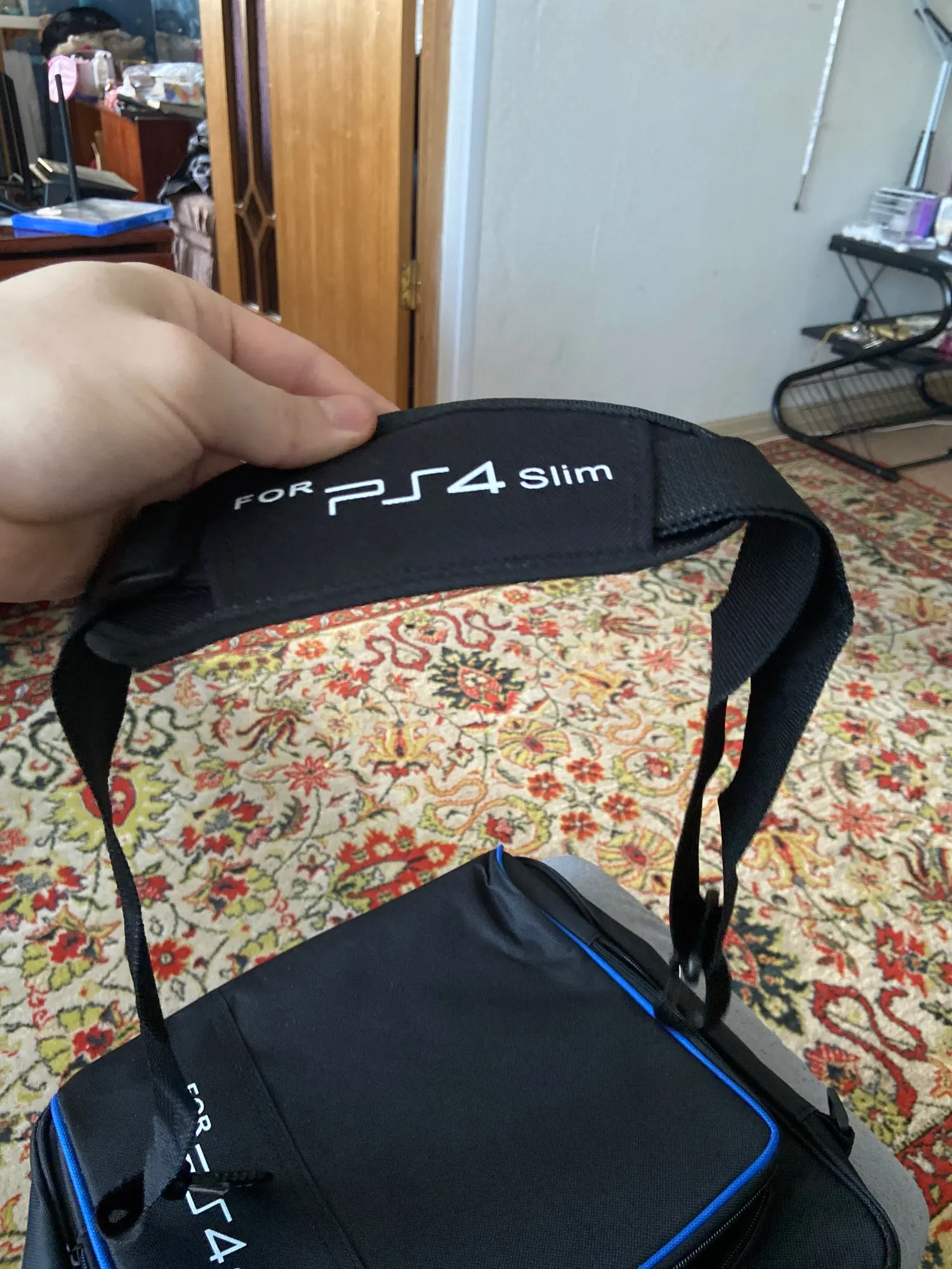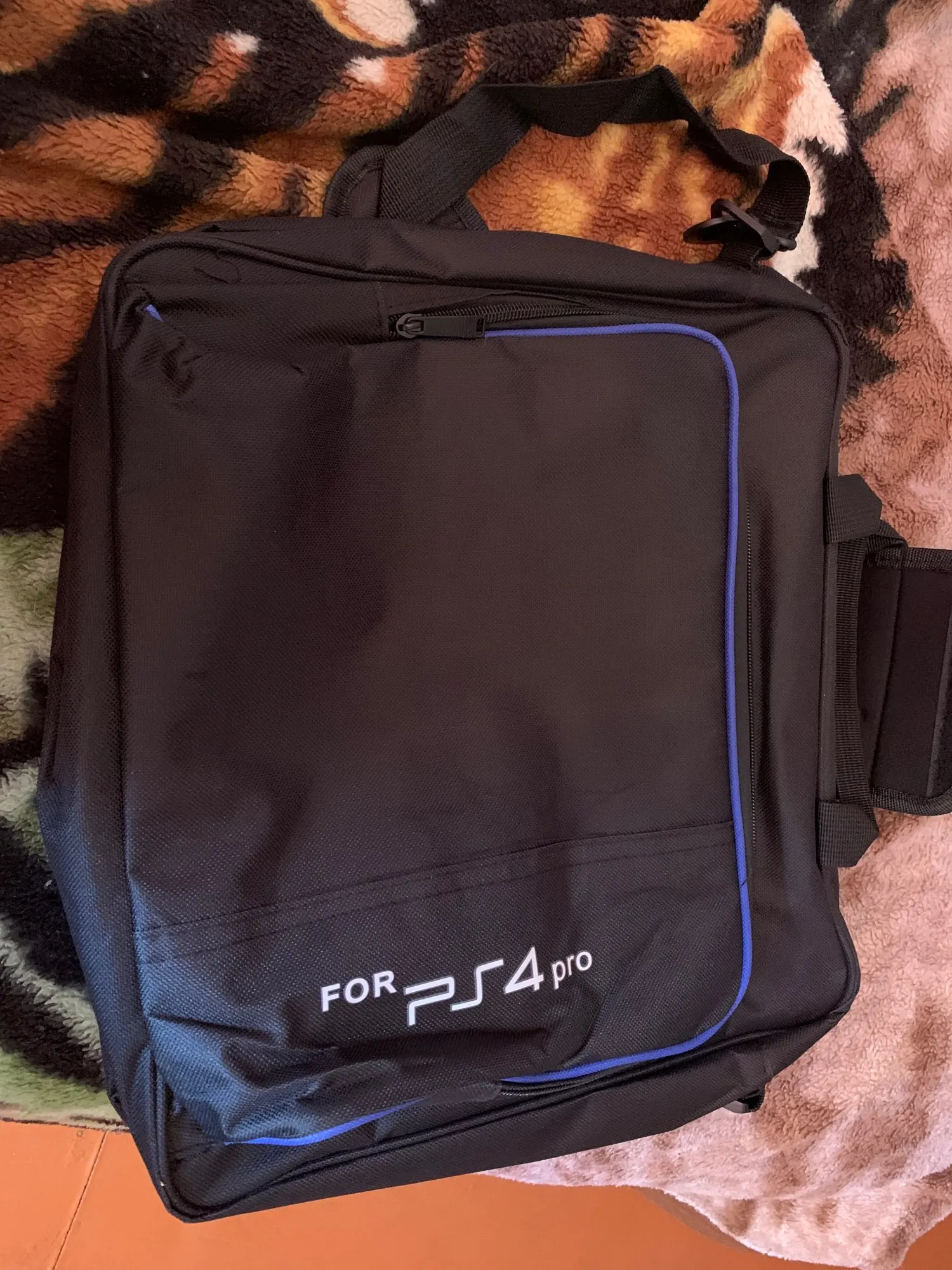 Сумка вполне достойная, цена = качество. По размерам отлично подходит для PlayStation 4 pro. В сумке есть два главных отсека: под приставку и под джойстики с проводами. Так же в комплект входит ручка, для переноски через плечо.