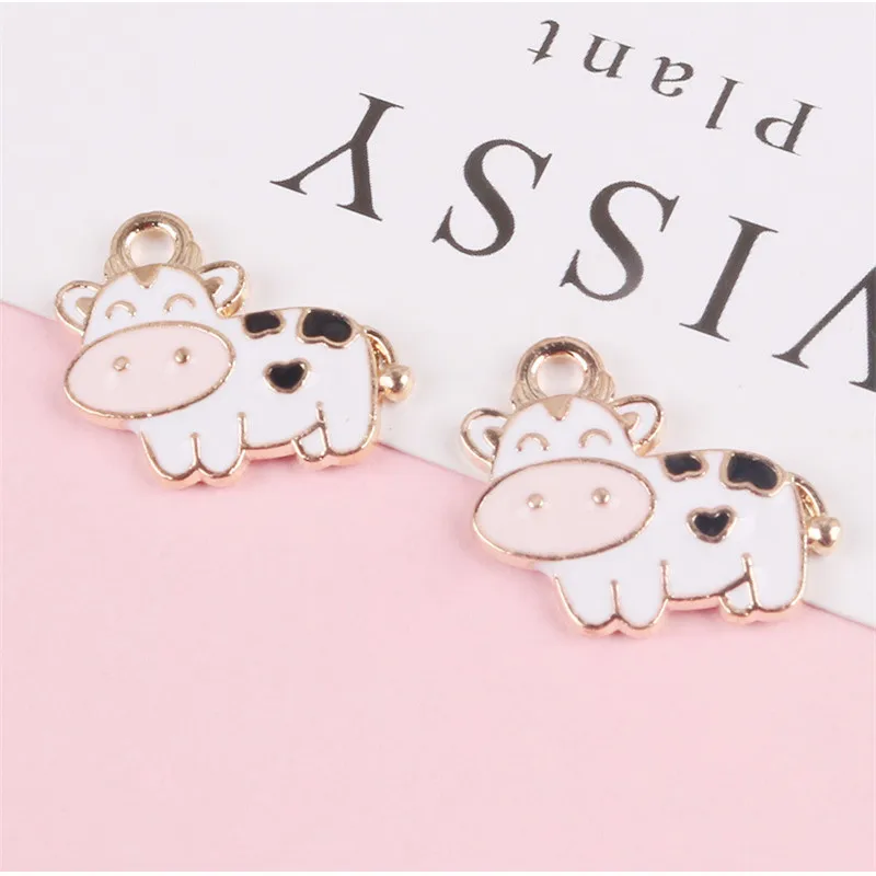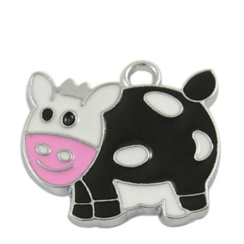 10 Белой и Черной эмалью Шарм в виде коровы для детей, мультики, опт Подвески с коровой для животных поставки ювелирных изделий на новый год Подвески корова RT36R3E
