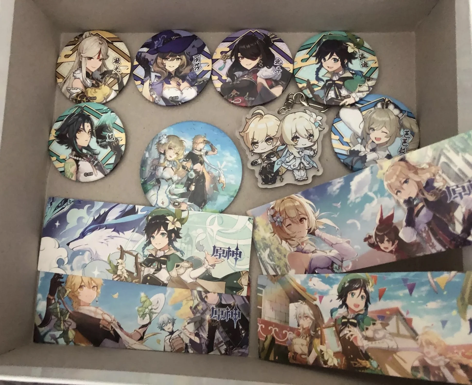 Много случайных вещей для украшения, не ожидайте дорогих вещей внутри или разнообразия, но это приносит немного всего, и с этим вы можете украсить рюкзаки, одежду, стену, ноутбуки... Рекомендуется, если вам нравится genshin, и вы не хотите думать о выборе вещей. Также в подарок для поклонника genshin идет хорошо