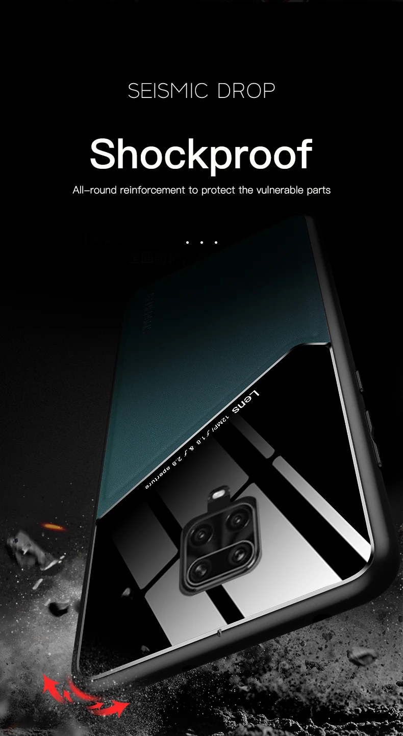 Чехол для Redmi Note 9 Pro, жесткий чехол из искусственной кожи с м...