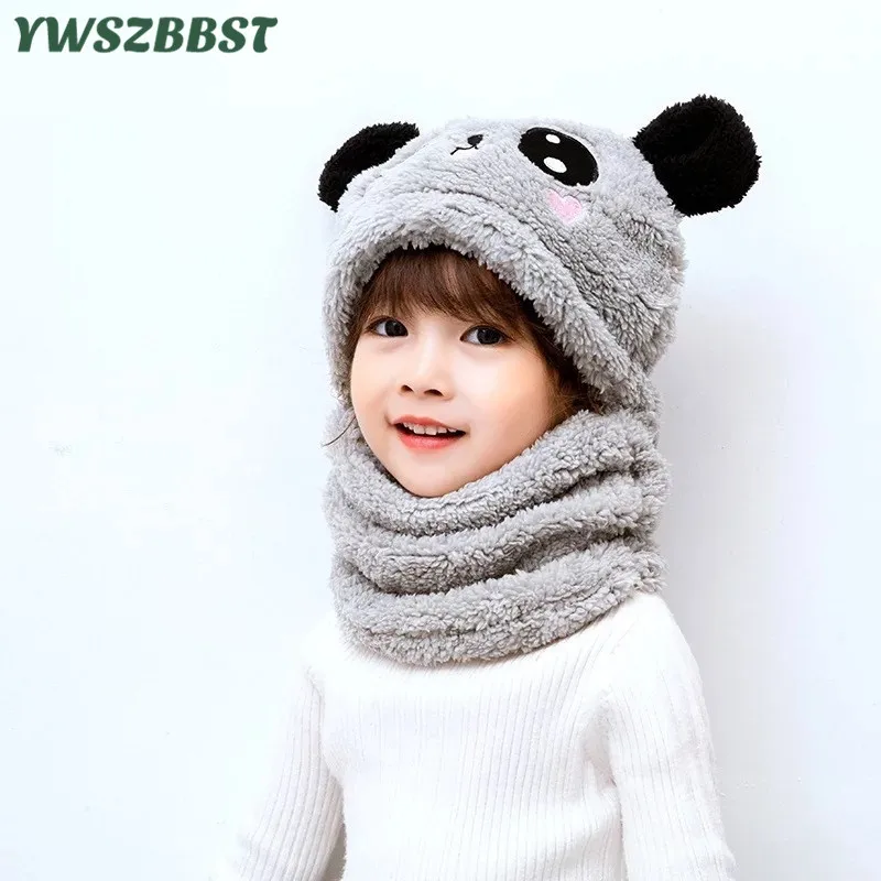 Детская одежда из новой зимней шапки; Бархатные комплекты для малышей с мультипликационным принтом панда с кроликом детские головных уборов, теплые, с круглой горловиной, детские вязаные шапки из плюша детские шапки и шарфа