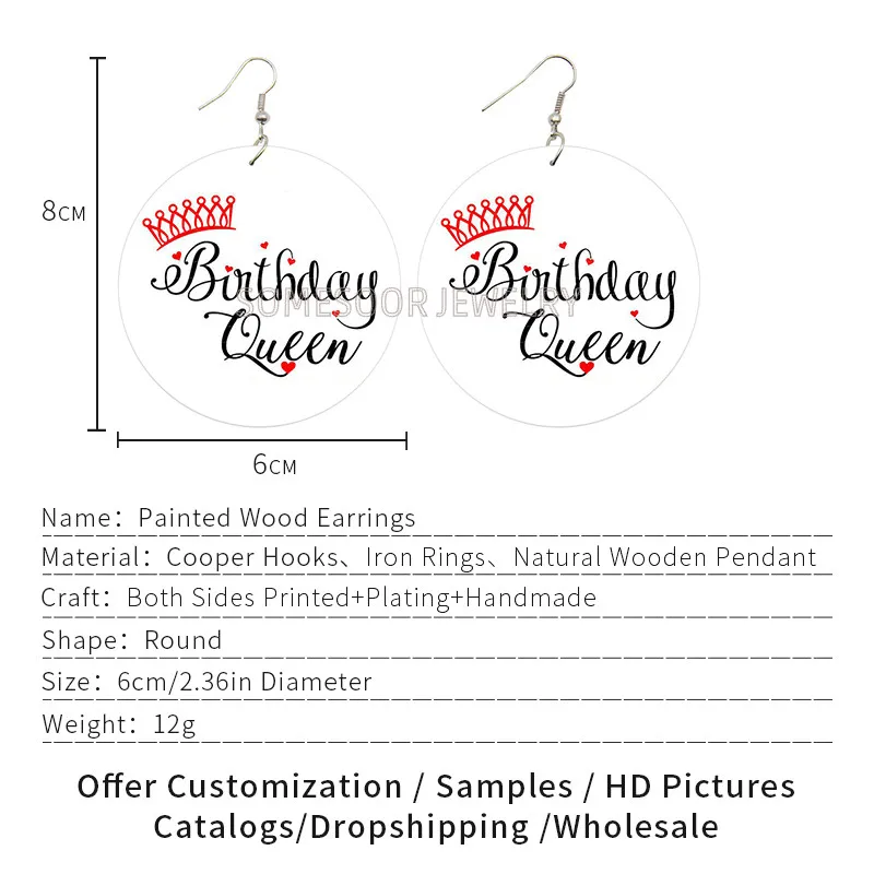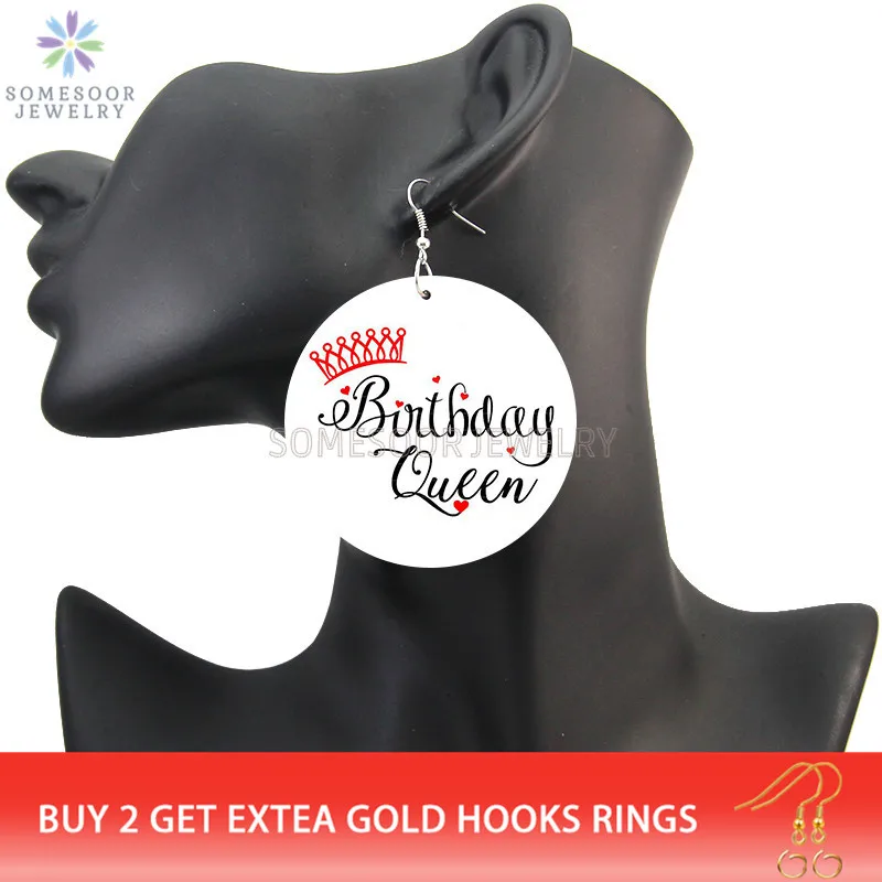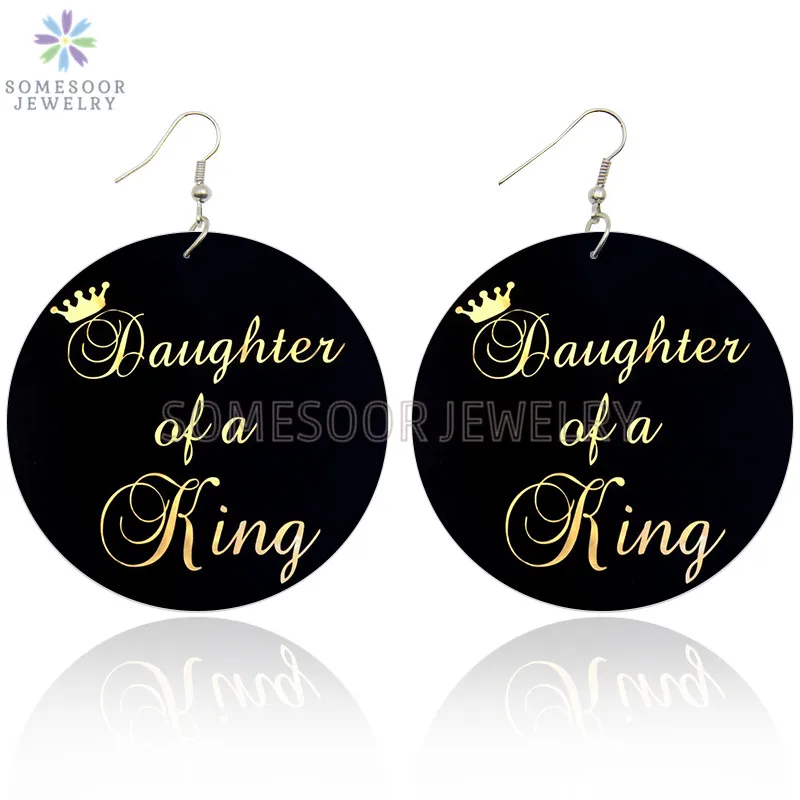 SOMESOOR дочь короля положительные африканские деревянные висячие серьги черный день рождения королева печатные петли Висячие уши для женщин Подарки