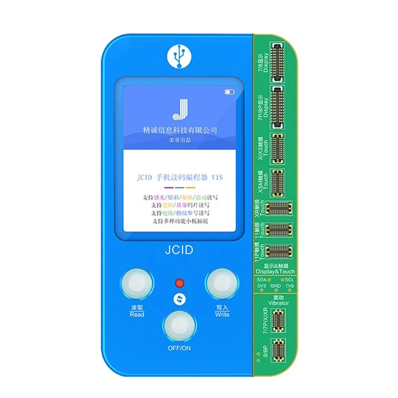 Программатор JC V1-это решение для датчика приближения светильник, отображения тона, Мультитач, вибратора, совместимого с вопросами Замены деталей с момента обновления ios 11. Сравните с предыдущим поколением, базовой полосой и логическим чипом, функция чтения/записи/редактирования была встроена, JC V1-самый мощный чип EEPROM ремонтный программатор!