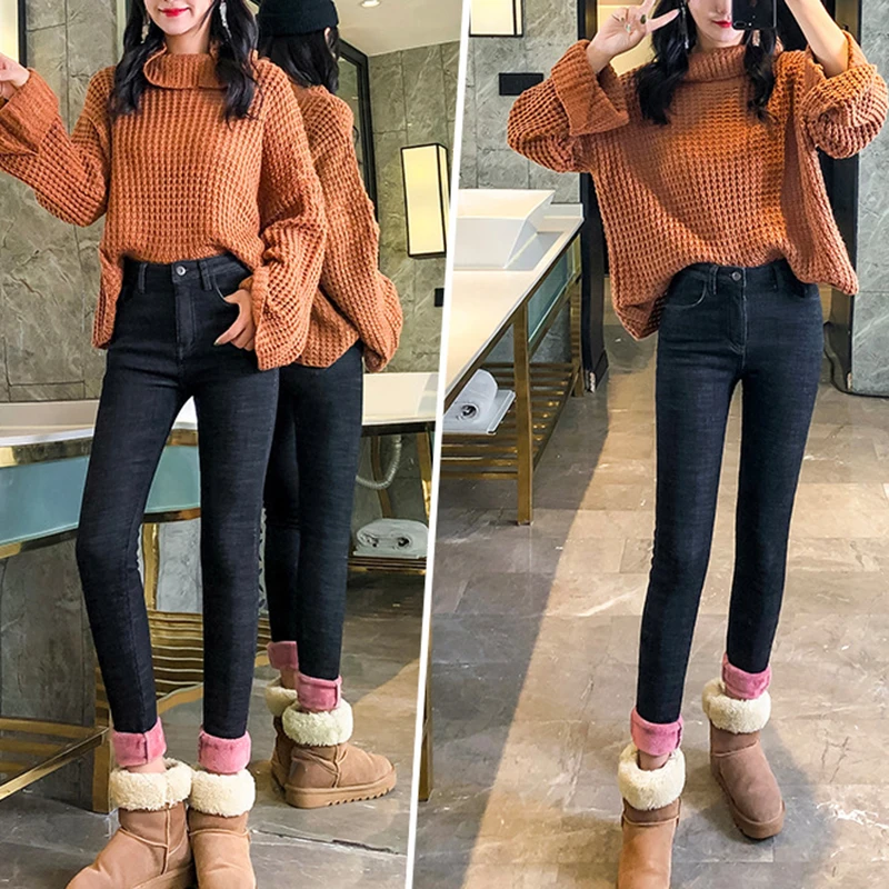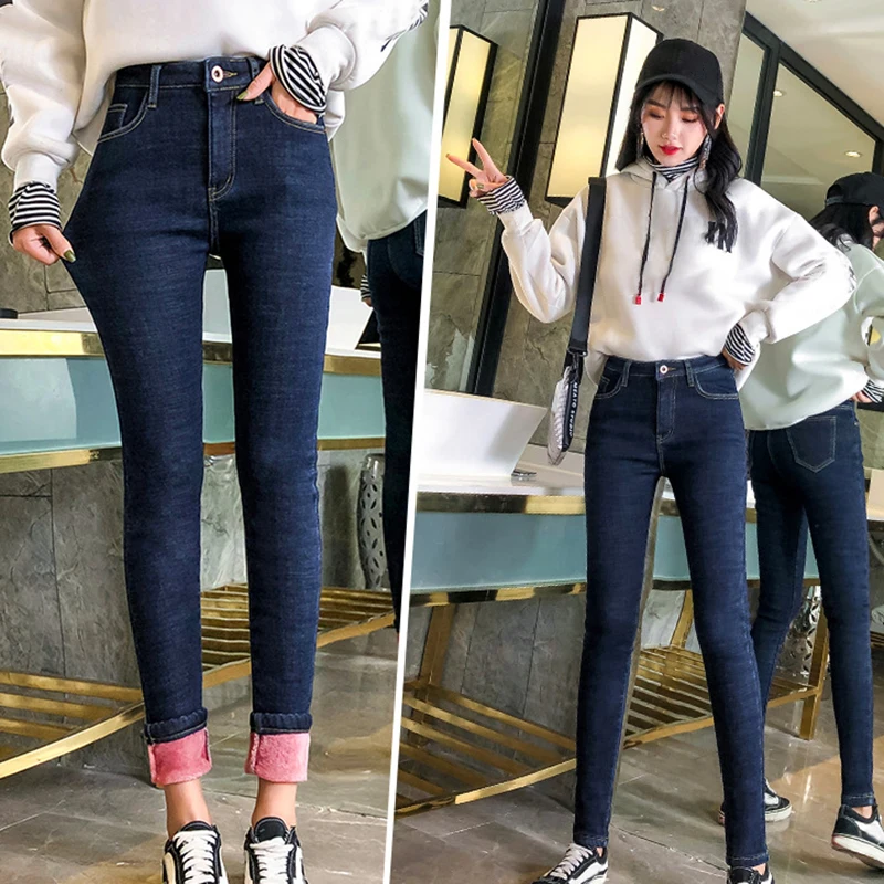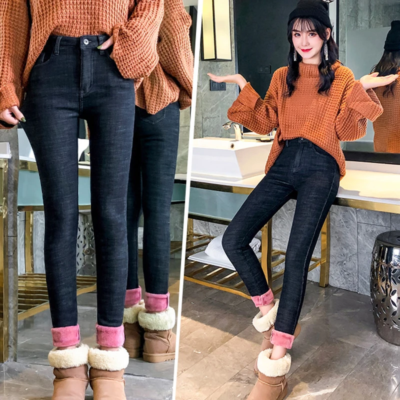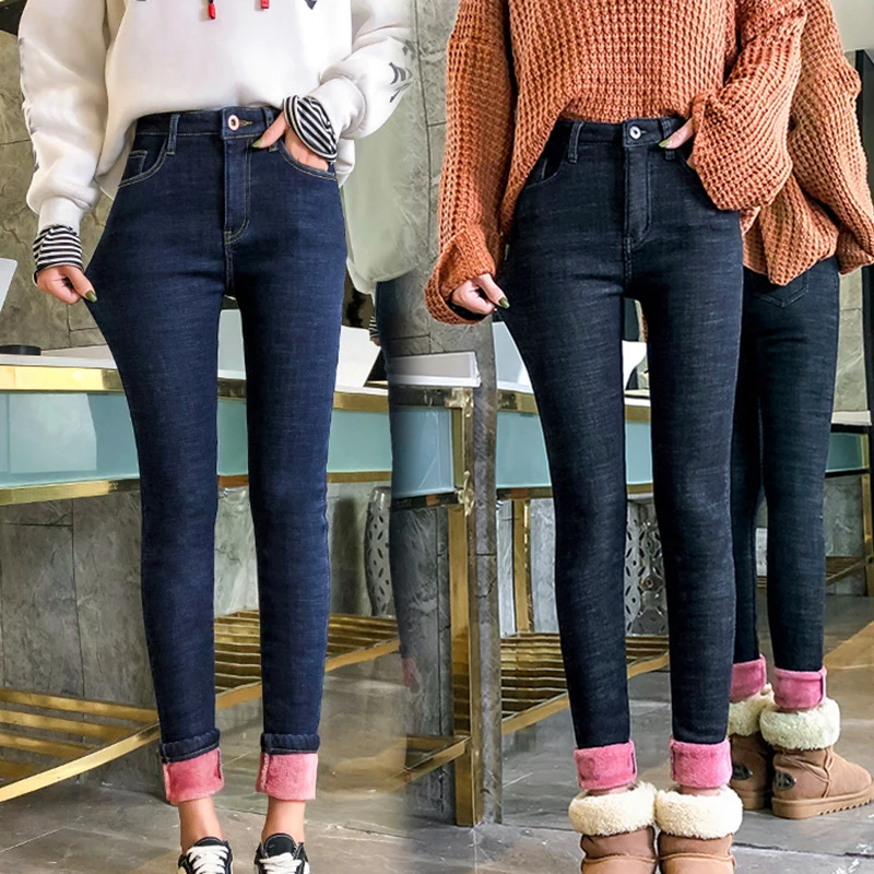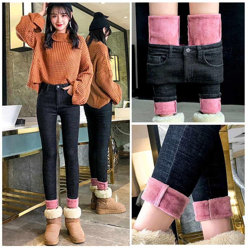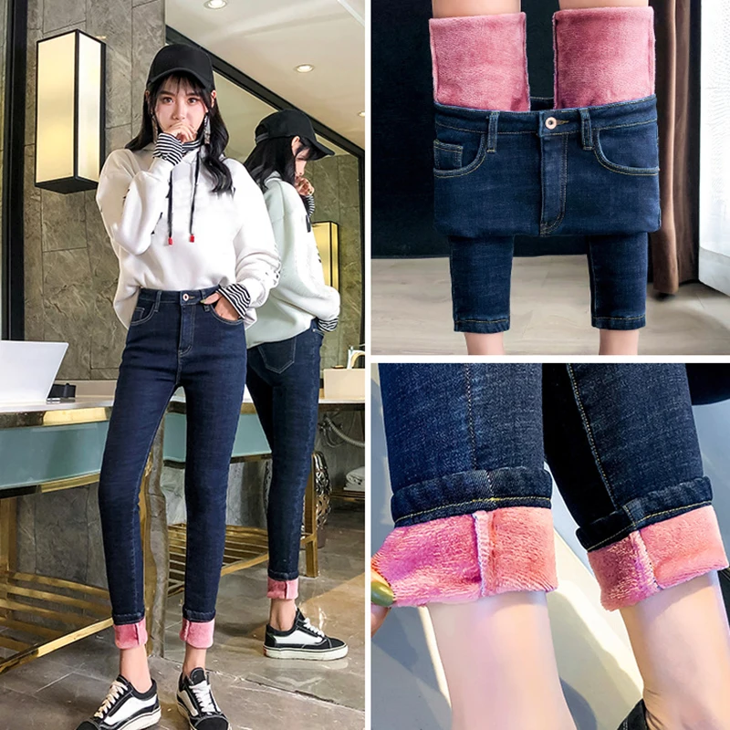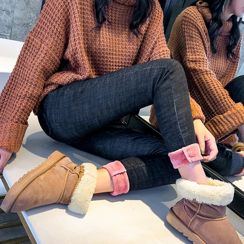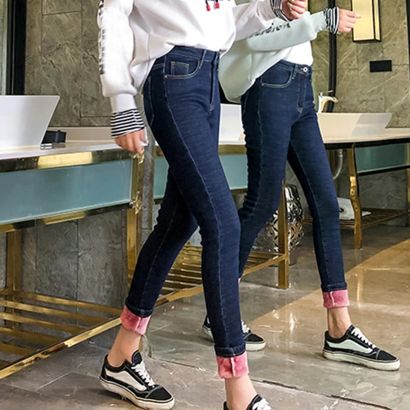 Женские термальные флисовые джинсовые леггинсы для девочек, теплые обтягивающие Стрейчевые брюки, джинсы, SAL99