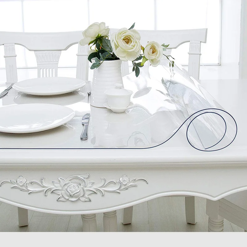 Прозрачная водонепроницаемая и маслостойкая Скатерть из ПВХ, защита от ожогов, силиконовая Мягкая стеклянная прямоугольная скатерть, коврик для кухонного стола