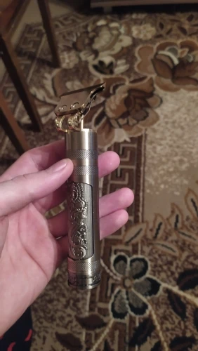 Я заказывал обычную, без картинки на ручке, а пришла с гравировкой дракона!!! Работает отлично и стрижет так же!
