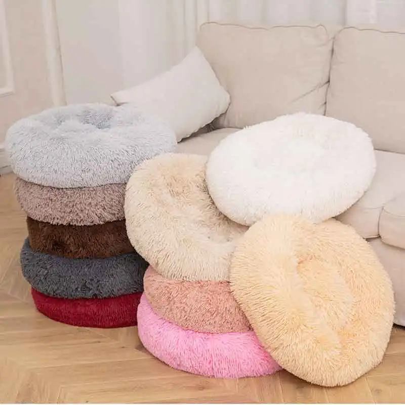 Супермягкая кровать для собак, 1 шт., длинный плюшевый пончик, круг...