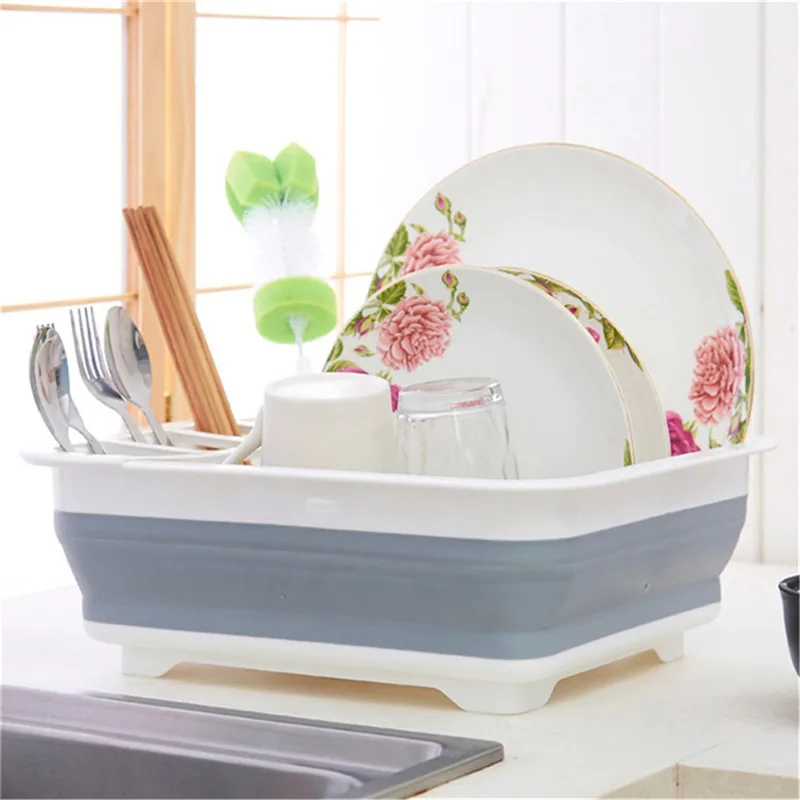 Особенности:1. Прочный материал, легкая чистка.2. Изделие изготовлено из ПП + ТПР материала, не легко повредить, не легко деформируется.3. Конструкция большой емкости. Можно положить блюда, чашки и другую утварь.4. Не легко накапливать воду. Он чистый.5. Складывается, легко принимается, прост в эксплуатации и легко моется.