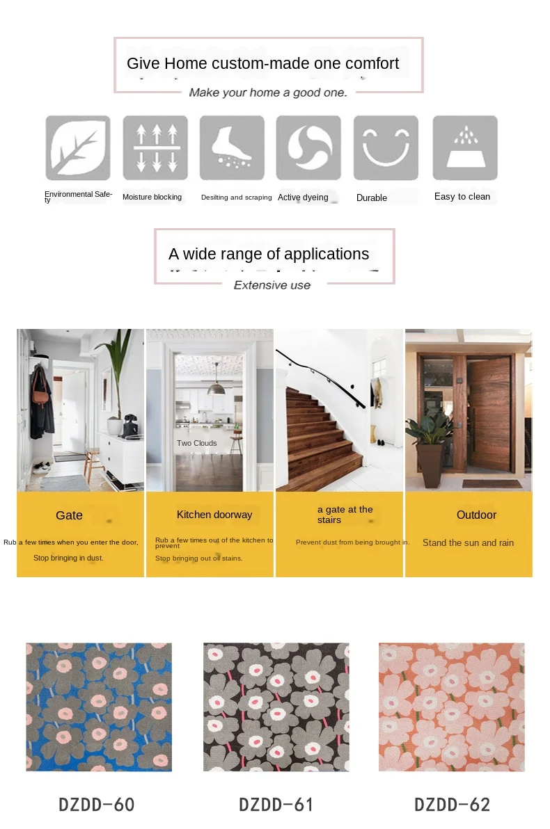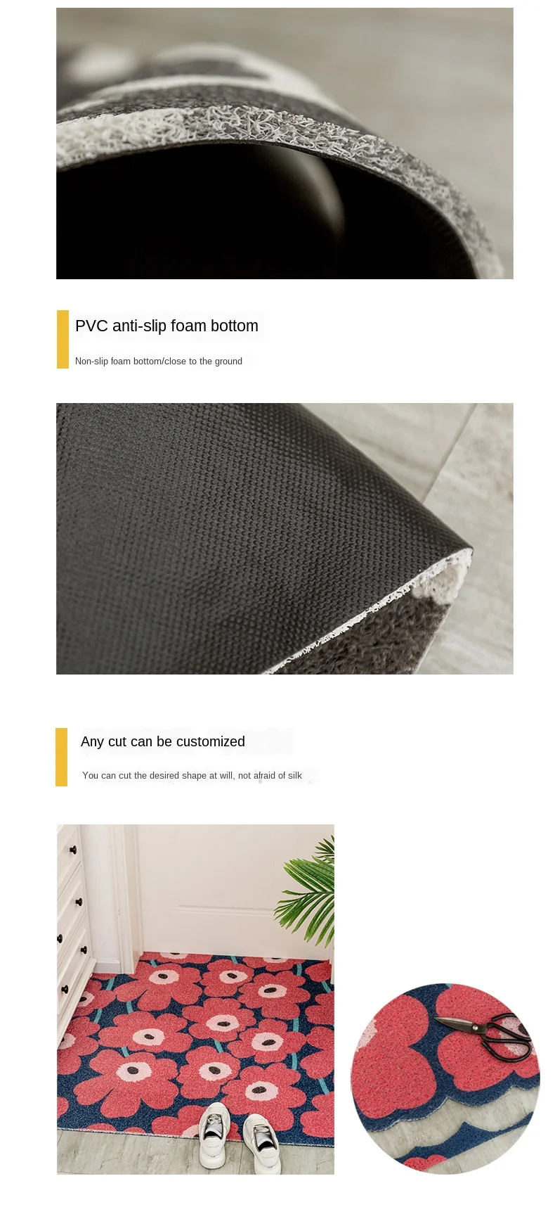 -100% новый и высокое качество.-Изготовлен из ПВХ материала шелковой петли, безвреден для человеческого тела.-Лучший подарок для семьи, помогает создать комфортную домашнюю жизнь.-Подходит для внутреннего внешнего входного пола.