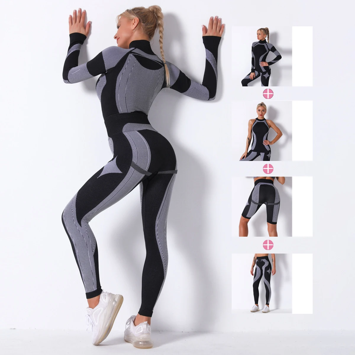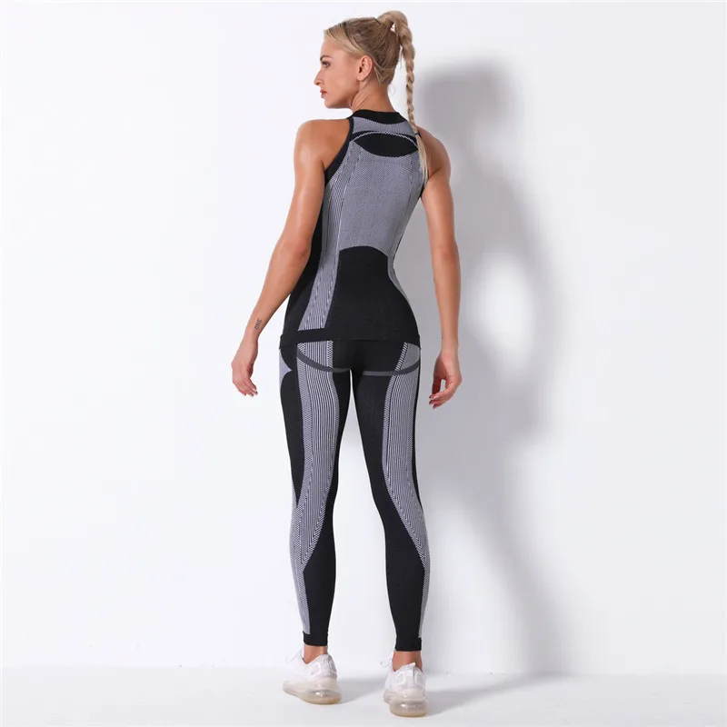Комплект Спортивный для фитнеса и йоги, бесшовный спортивный костюм из двух предметов, с чашками пуш-ап, Высокоэластичный костюм для воркаута, леггинсы