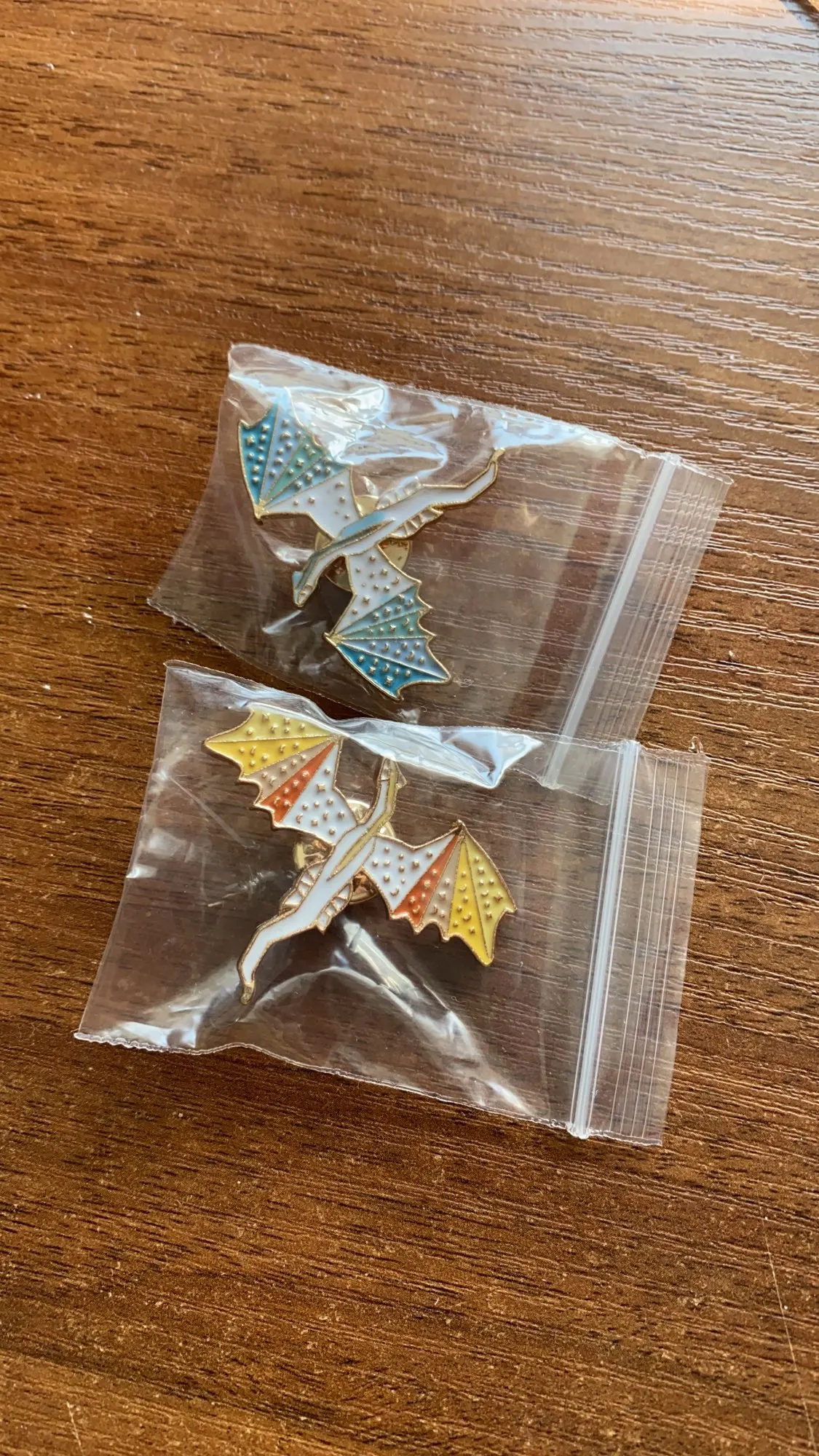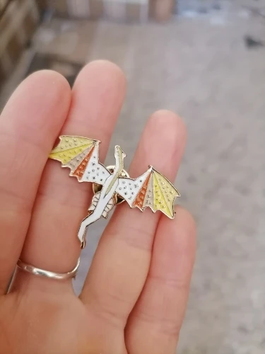 Пришёл за две недели, точно как на картинке, никаких повреждений. Единственное - игла довольно толстая и тупая, ну да это значок не особенно портит. С продавцом общалась (чтобы уладить собственный косяк), ответил очень быстро, всё благополучно разрешилось