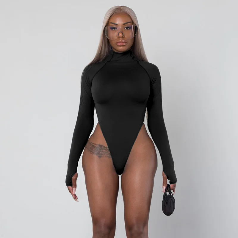 Новый весенний стильный модный трендовый тонкий комбинезон с высоким воротом женский боди Женский комбинезон Женская нечеткая одежда