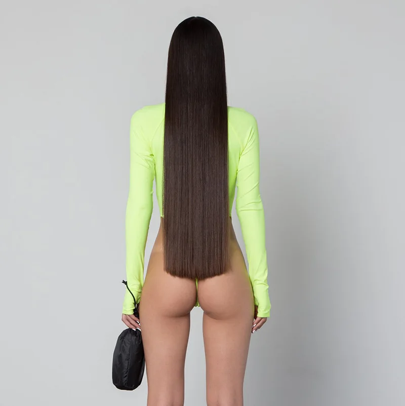 Женское неоновое облегающее боди с длинным рукавом и высоким горлом...