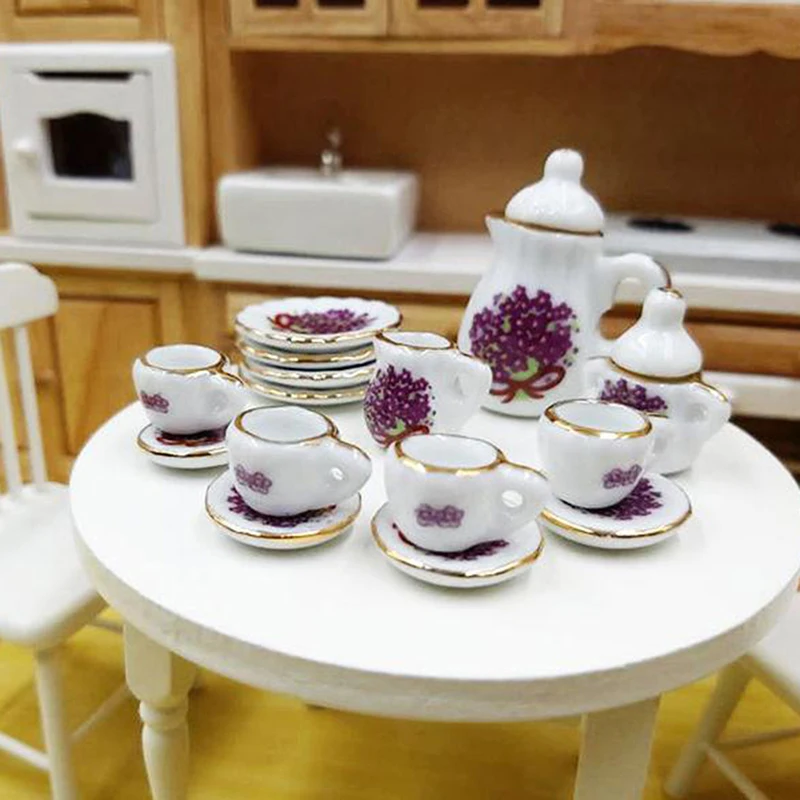 15 шт.компл. 1:12 миниатюрная керамическая посуда для кукольного домика фарфоровая керамическая чайная чашка тарелка имитация кухонные игрушки