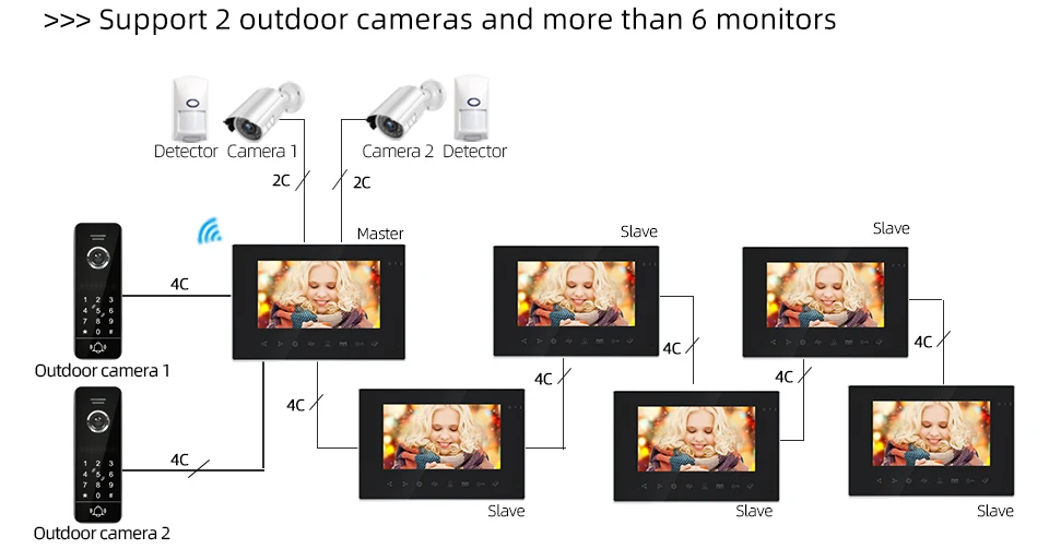 Видеодомофон Jeatone 960P EPC поддерживает соединение с PIR-детекторами, аналоговой камерой и электронным замком. Который может защитить ваш дом и собственность во всех аспектах.