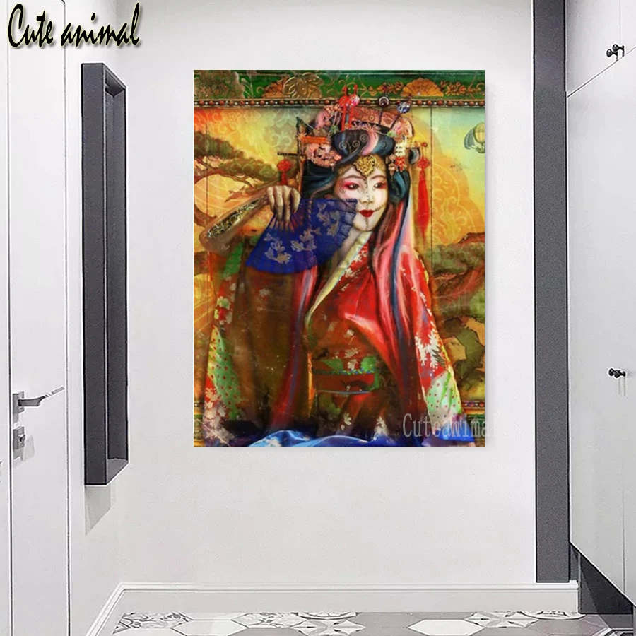 5D алмазная картина полностью квадратная круглая дрель японское кимоно женское изображение Алмазная вышивка крестиком набор мозаичный Декор подарок